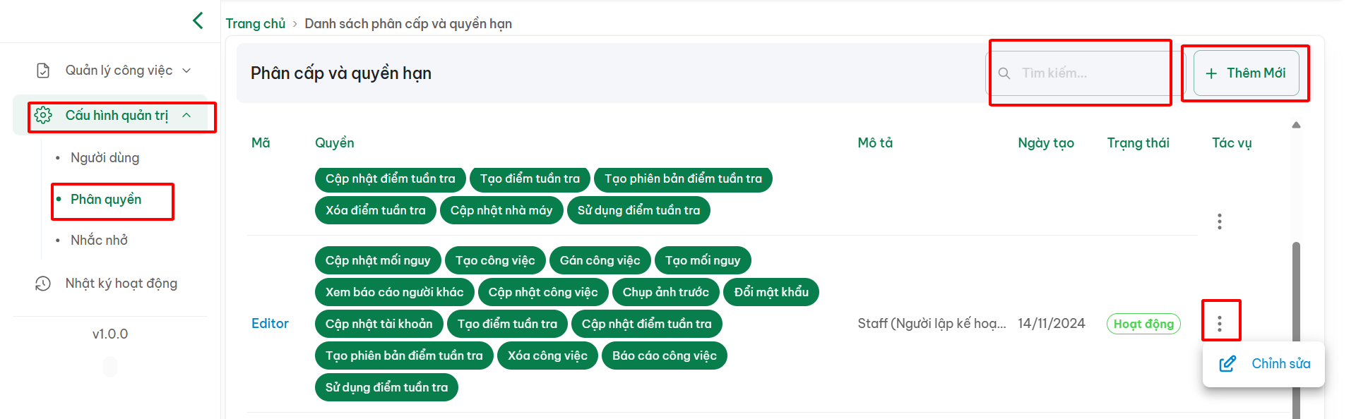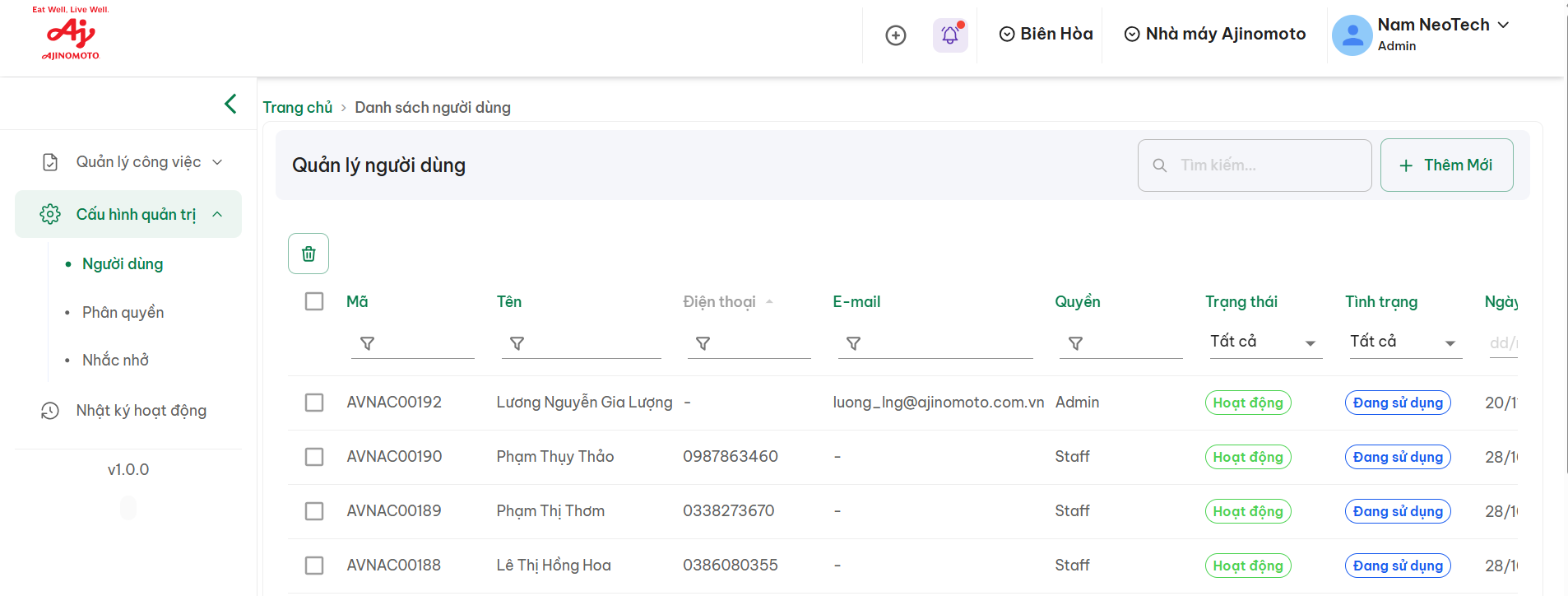 !Lưu ý: Chỉ có tài khoản Admin mới được xem và thao tác các mục liên quan đến Người dùng và Phân quyền.