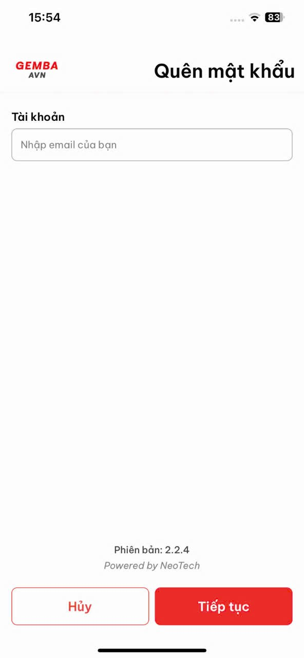 Ở màn hình đăng nhập, người dùng nhấn chọn "Quên mật khẩu" , sau đó nhập tài khoản email đã đăng ký > Sau đó chờ email gửi mã OTP và nhập > Điền vào ô mật khẩu mới & ô xác nhận mật khẩu > Nhấn Tiếp tục để hoàn tất là xong.