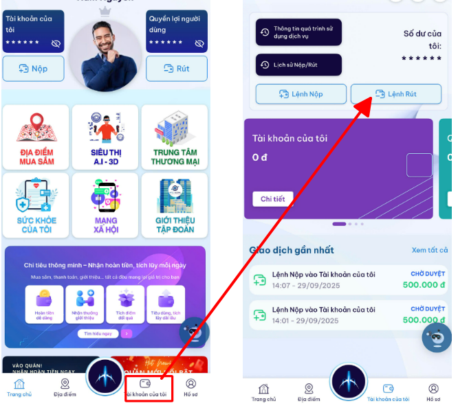 Cách 3: Chọn Tài khoản của tôi > Chọn Lệnh rút