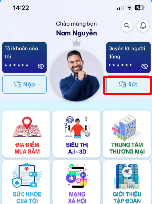 Cách 1: Chọn " Rút tiền" ngoài trang chủ