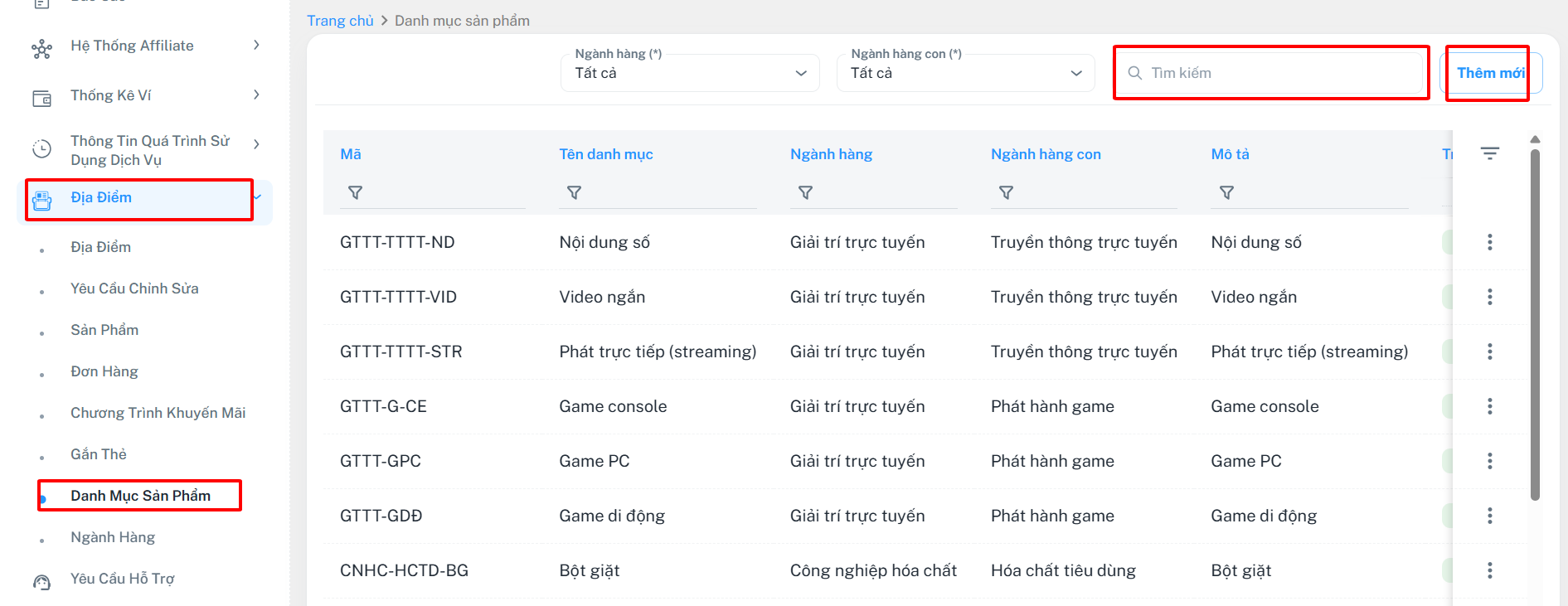 (3) Tìm kiếm danh mục sản phẩm theo ngành hàng