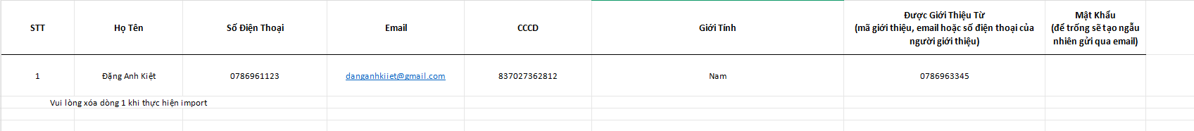 Bước 2: Tải file mẫu > Sửa file theo đúng thông tin yêu cầu