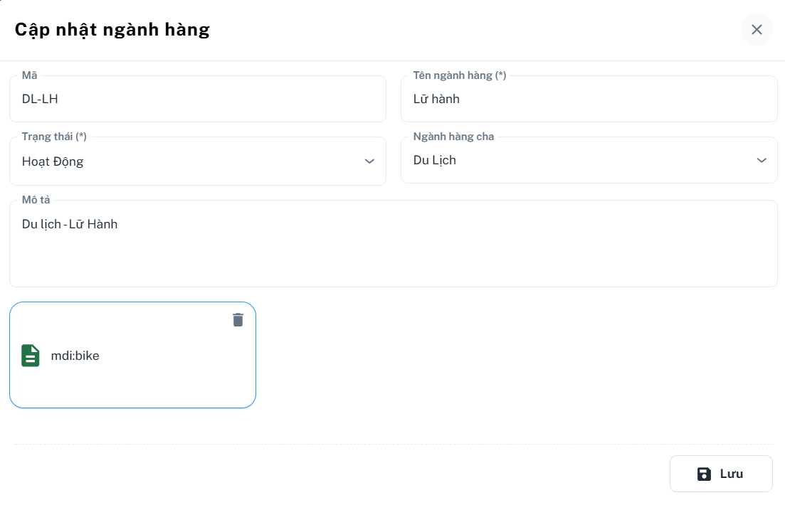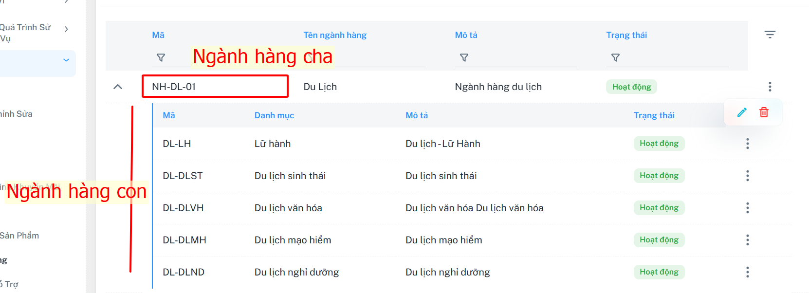 Tại màn hình danh sách ngành hàng > Bấm biểu tương