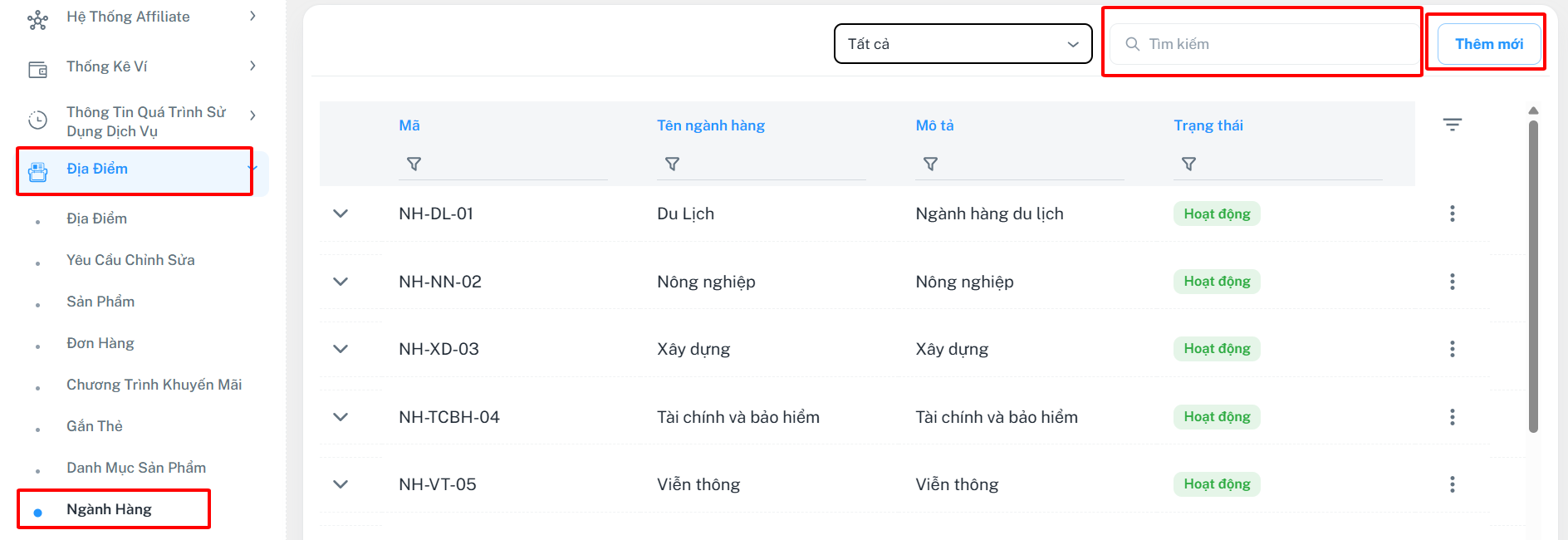 Mã | Tên ngành hàng | Mô tả |Trạng thái