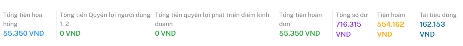 + Tái tiêu dùng: Số tiền tái tiêu dùng trong Quyền lợi người dùng (20% không thể rút)