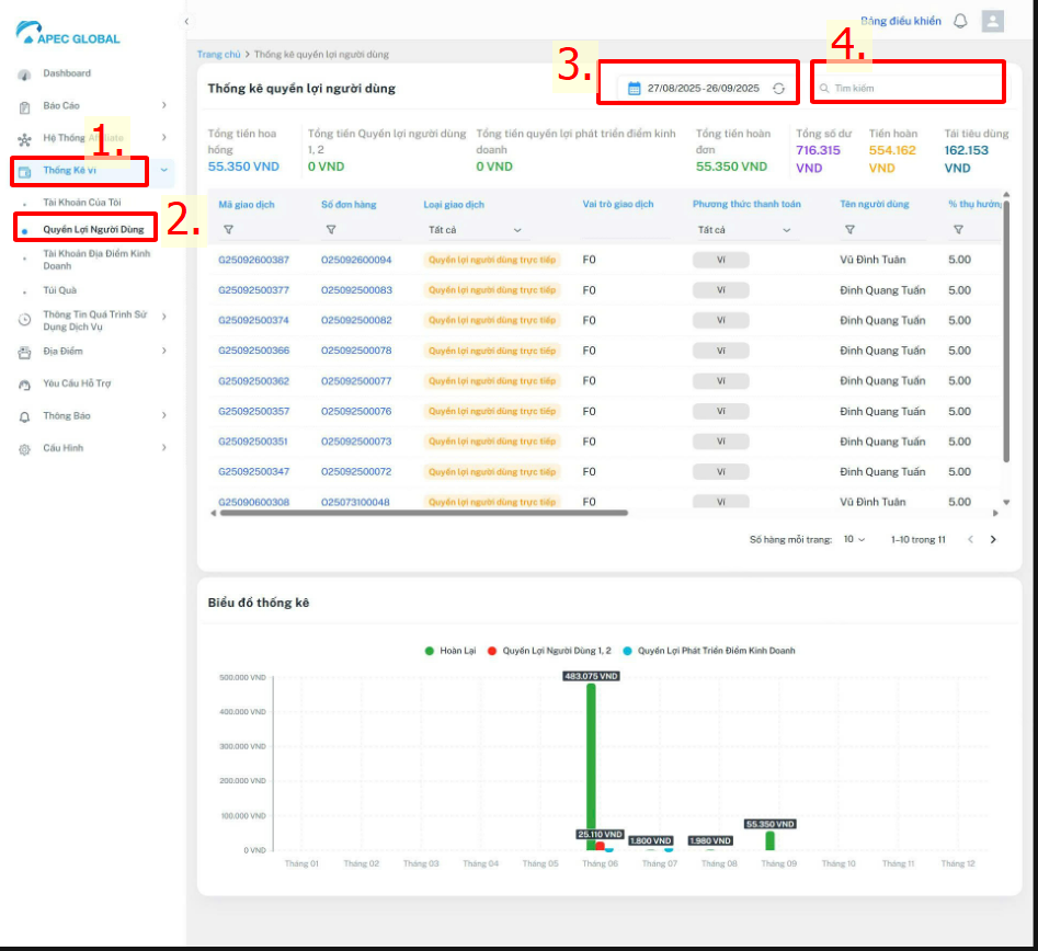 (3) Lọc các thống kê ví theo thời gian