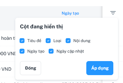 Bao gồm : Tiêu đề | Loại | Nội dung | Ngày tạo | Ngày cập nhật