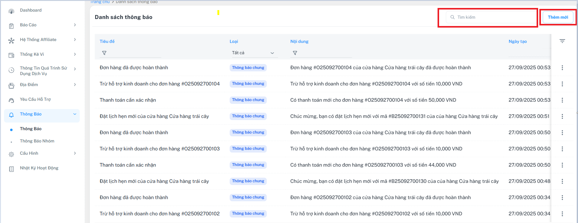 - Bộ lọc nhanh cho danh mục Thông báo