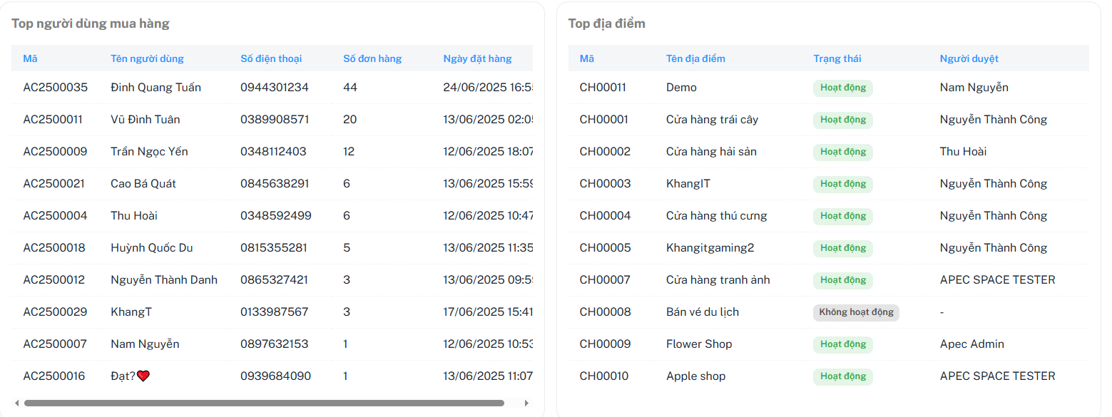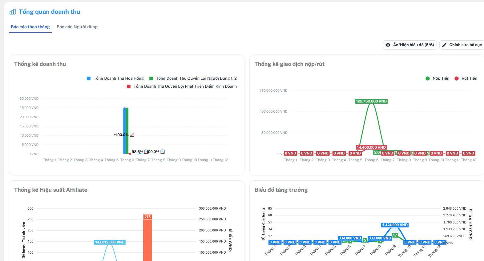 Giao diện tổng quát các Dashboard và các thông tin báo cáo chi tiết
