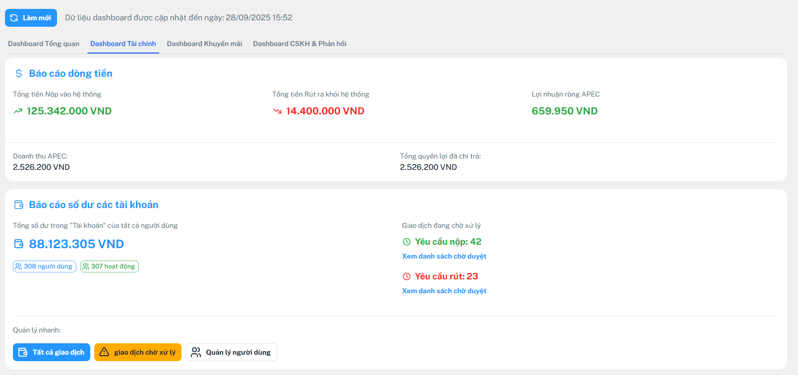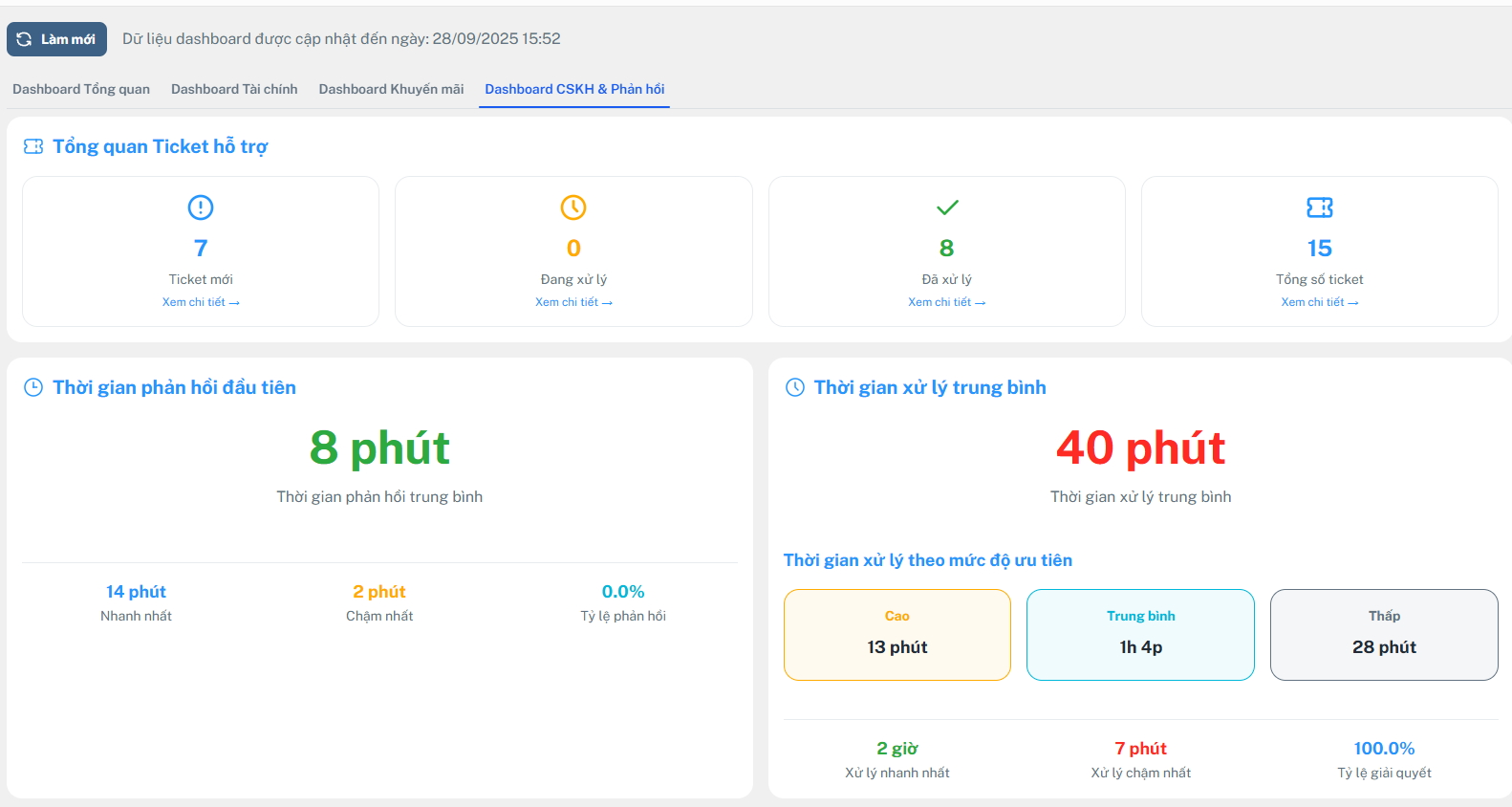 *Dashboar CSKH ( Chăm sóc khách hàng ) & Phản hồi :
