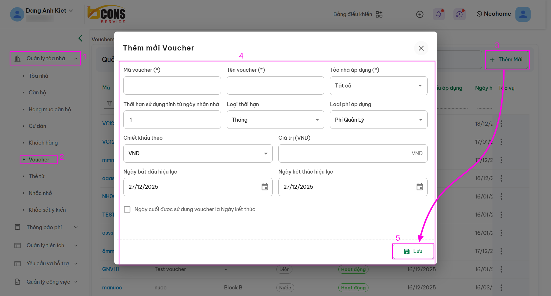 Bước 3: Kiểm tra thông tin và bấm nút Lưu để hoàn tất tạo mới Voucher.
