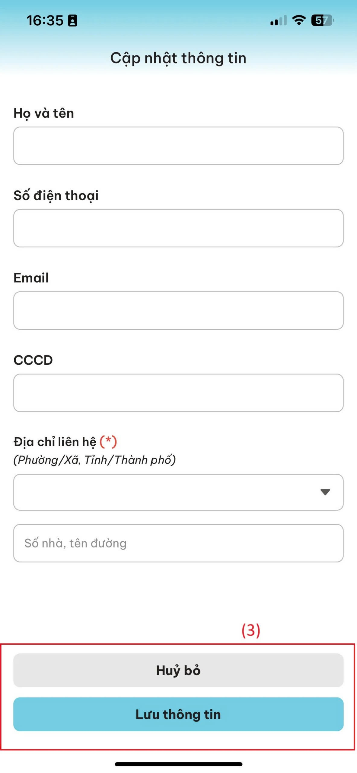 - Bấm " Hủy bỏ". Hệ thống quay lại màn hình thông tin cá nhân