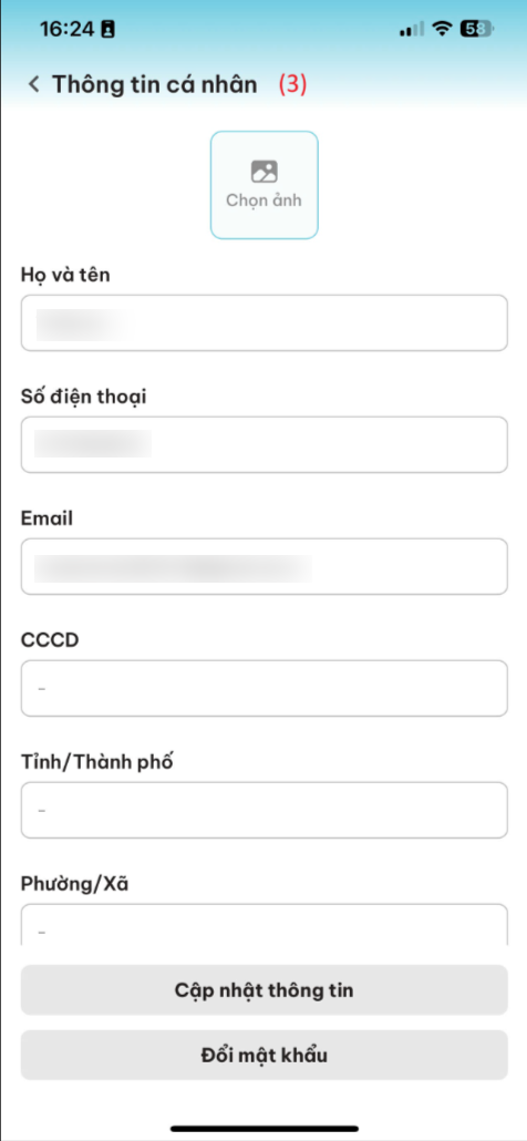Tại màn hình "Chi tiết thông tin cá nhân"