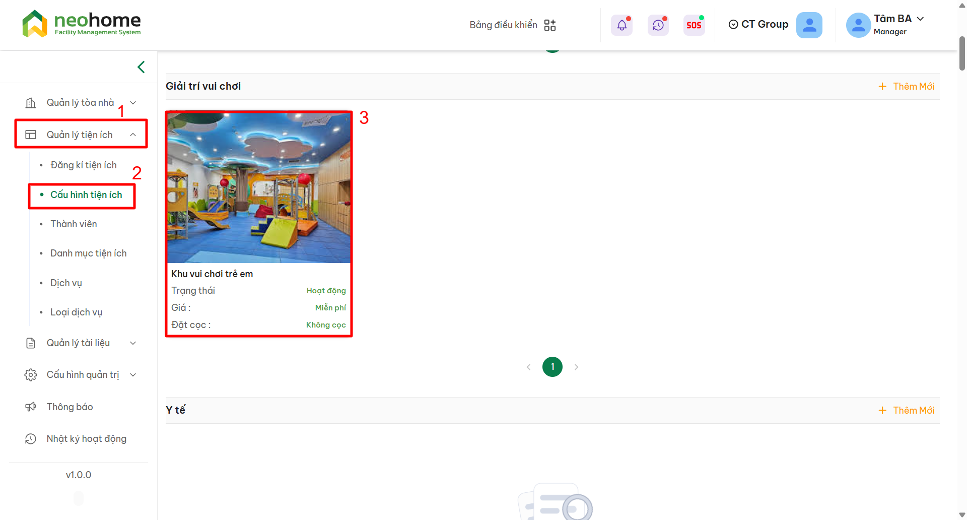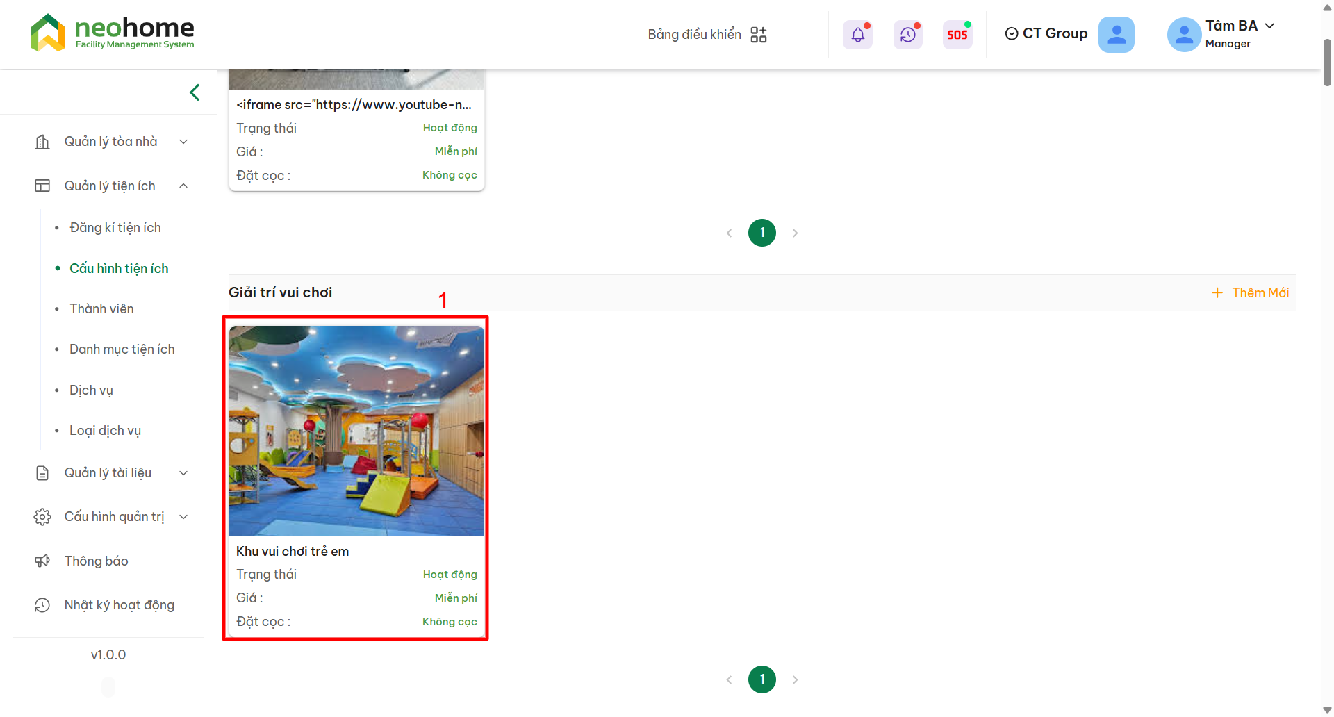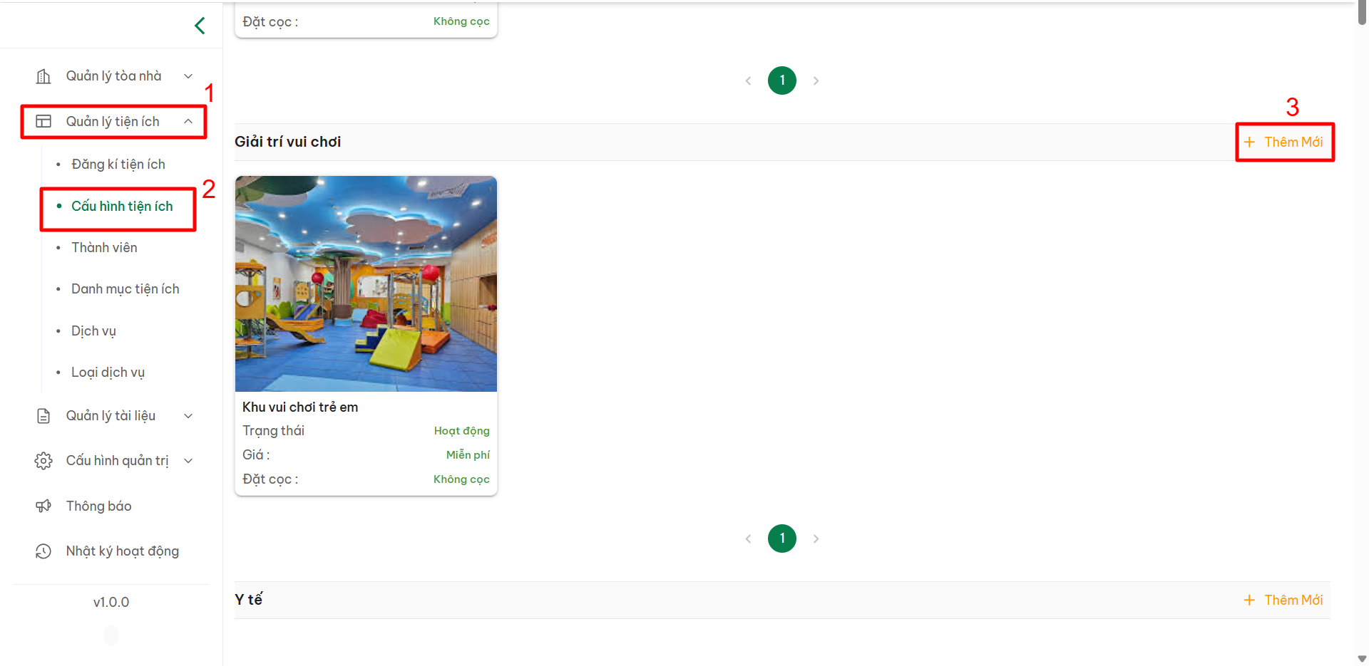Lưu ý: Mỗi 1 danh mục tiện ích có 1 nút thêm mới , vì thế khi bấm thêm mới tiện ích thì hệ thống sẽ thêm mới tiện ích trong danh mục đó.