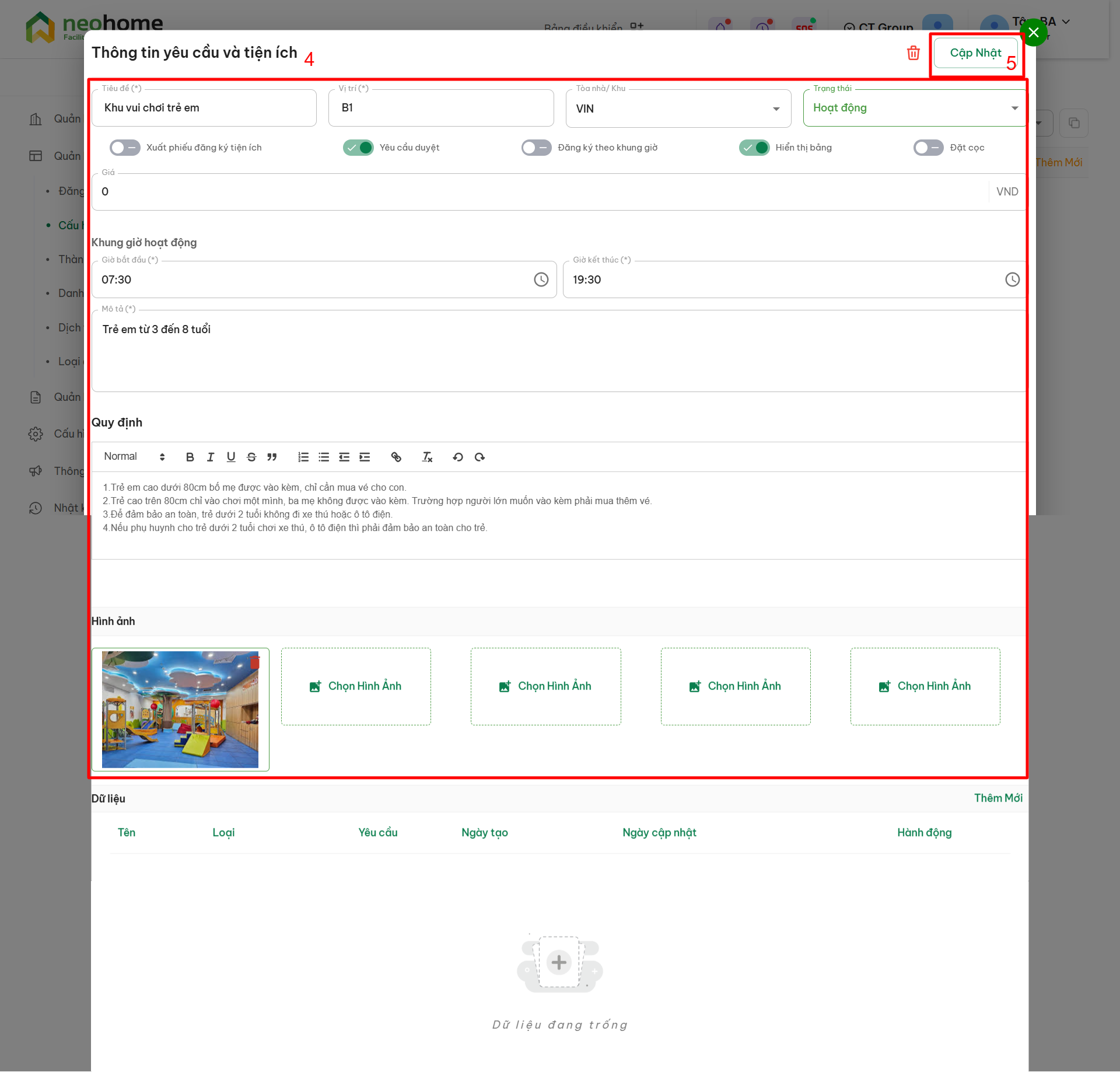 Bước 4: Hiển thị giao diện màn hình chỉnh sửa tiện ích. Cập nhập hoặc chỉnh sửa các thông tin của tiện ích