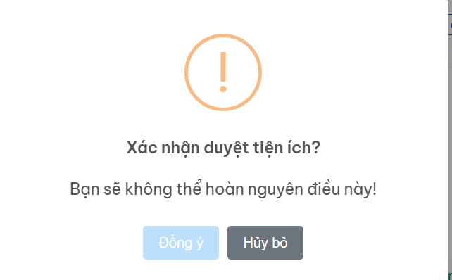 - Hệ thống trả về hộp thoại xác nhận bạn có muốn xóa tiện ích này không.