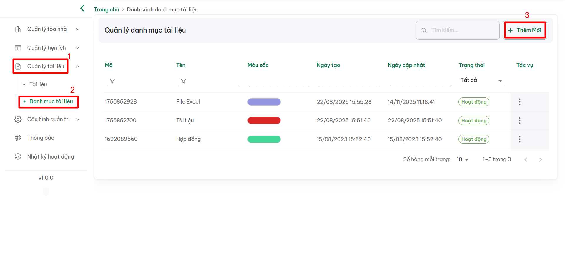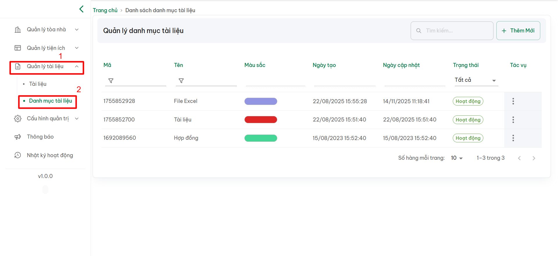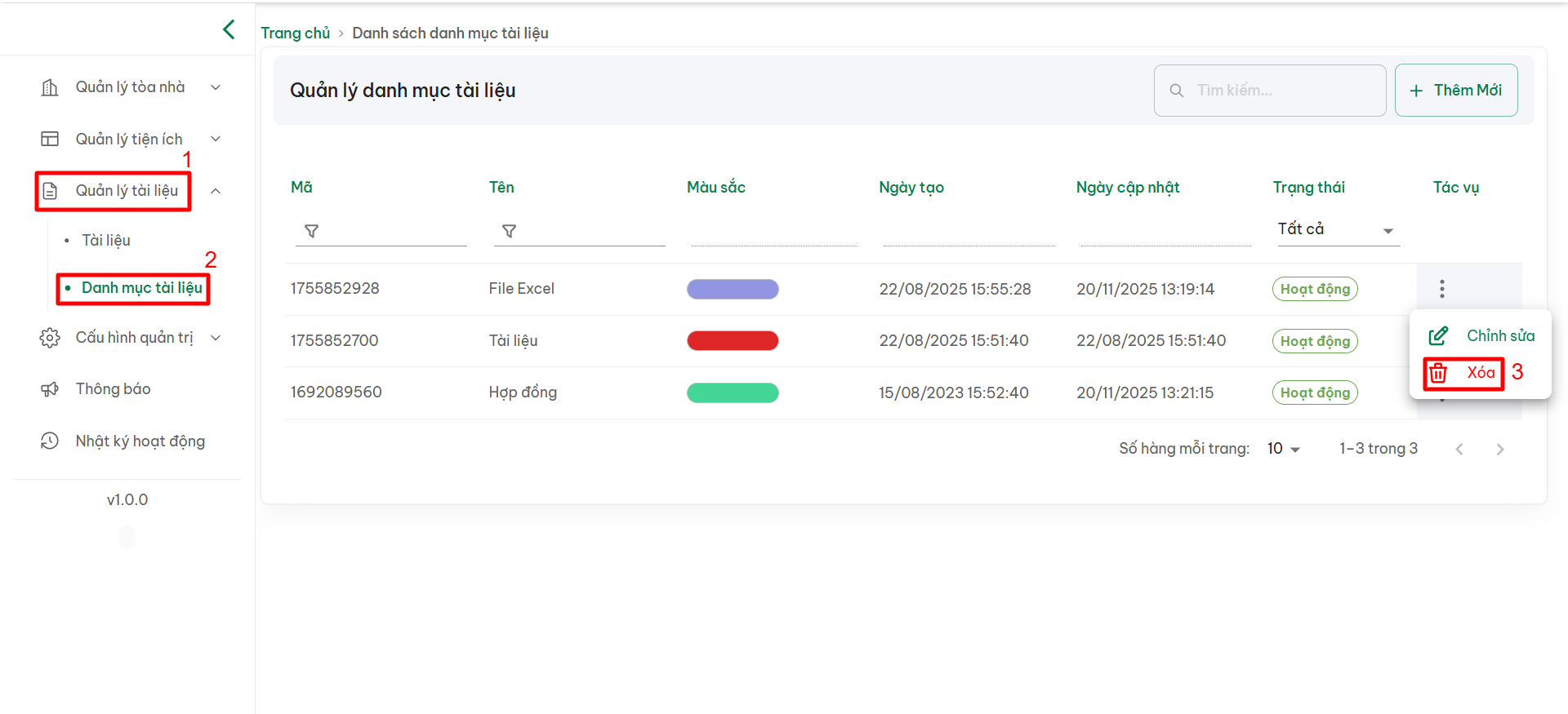 - Xóa: Cho phép xóa bỏ danh mục tài liệu khi không còn hoạt động.
