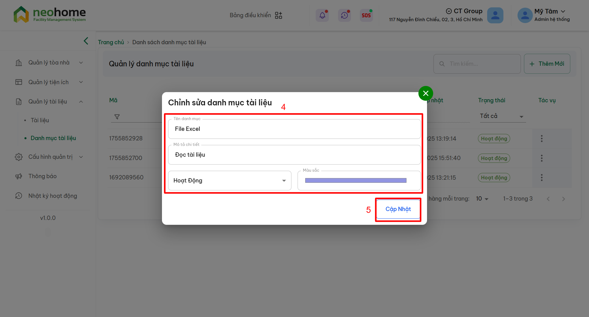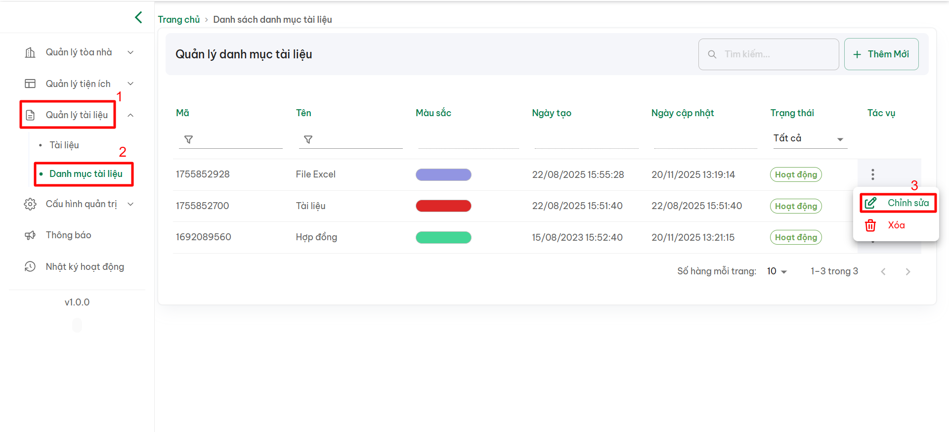 3. Chỉnh sửa /Xóa danh mục tài liệu