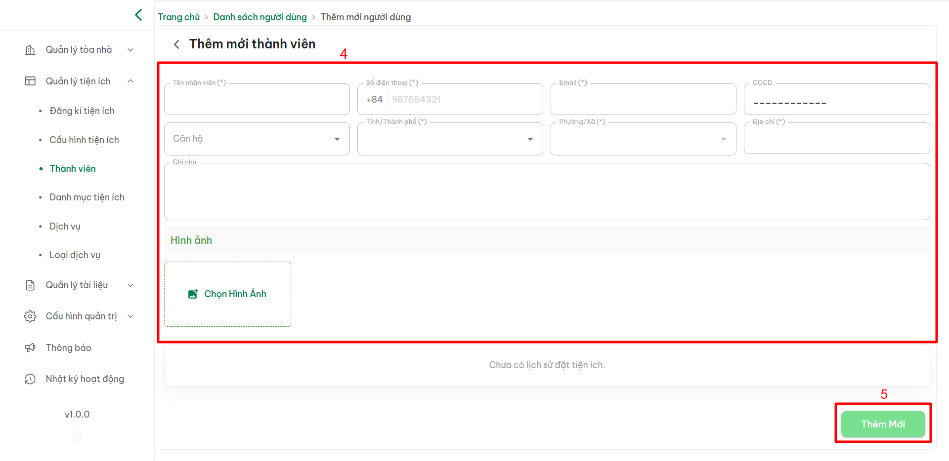 Bước 3: Bấm vào"Thêm mới".Hệ thống sẽ hiển thị giao diện "Thêm mới thành viên"