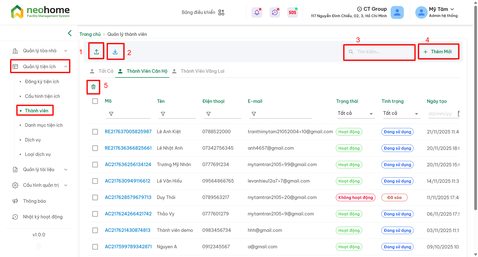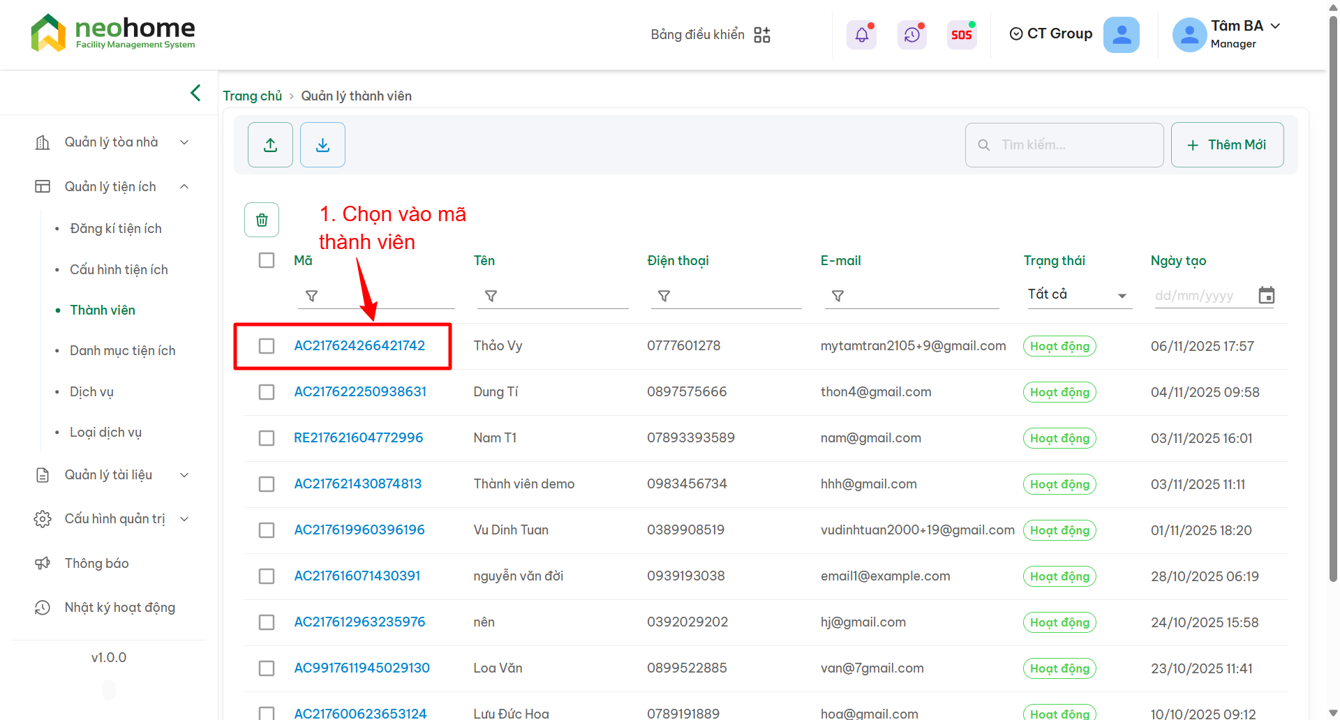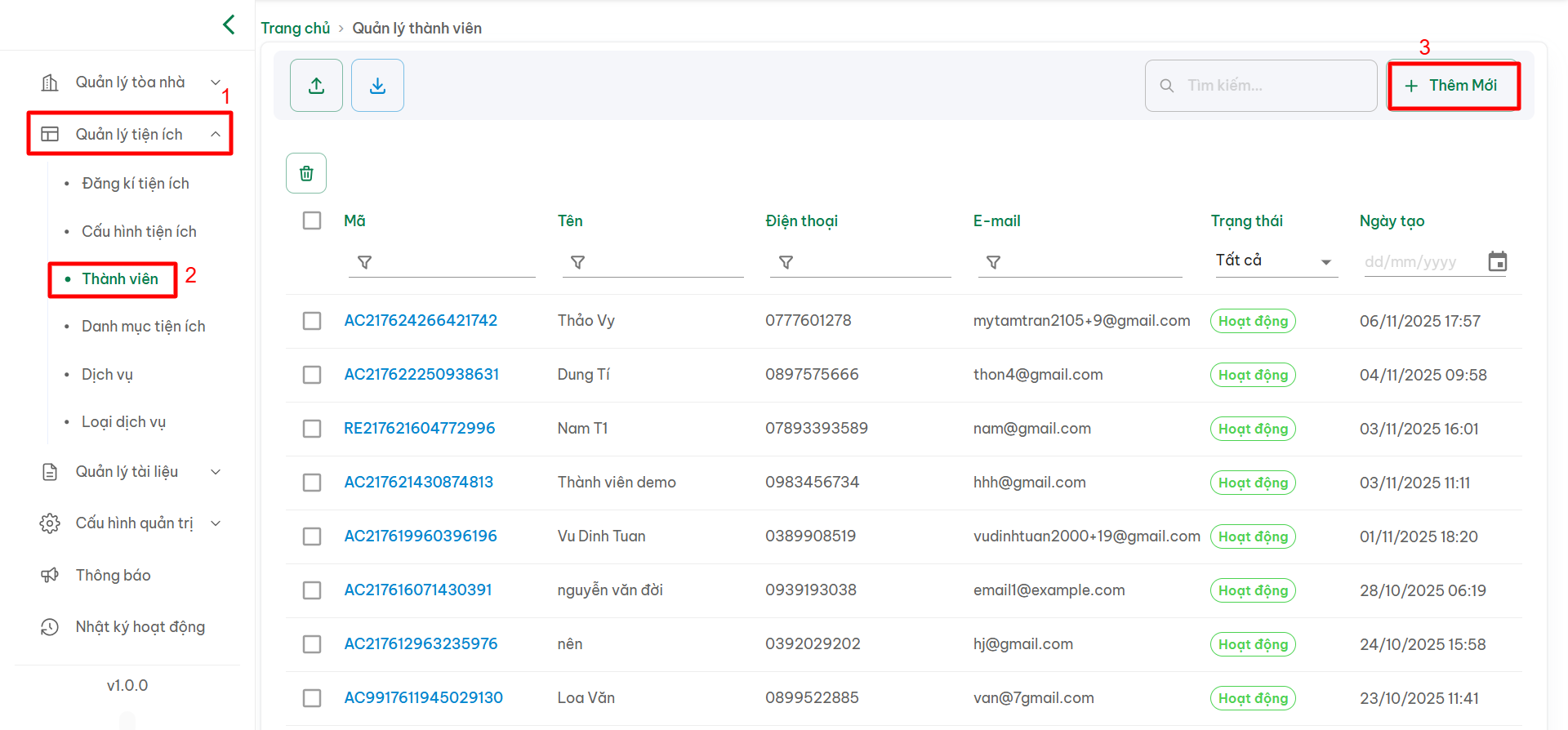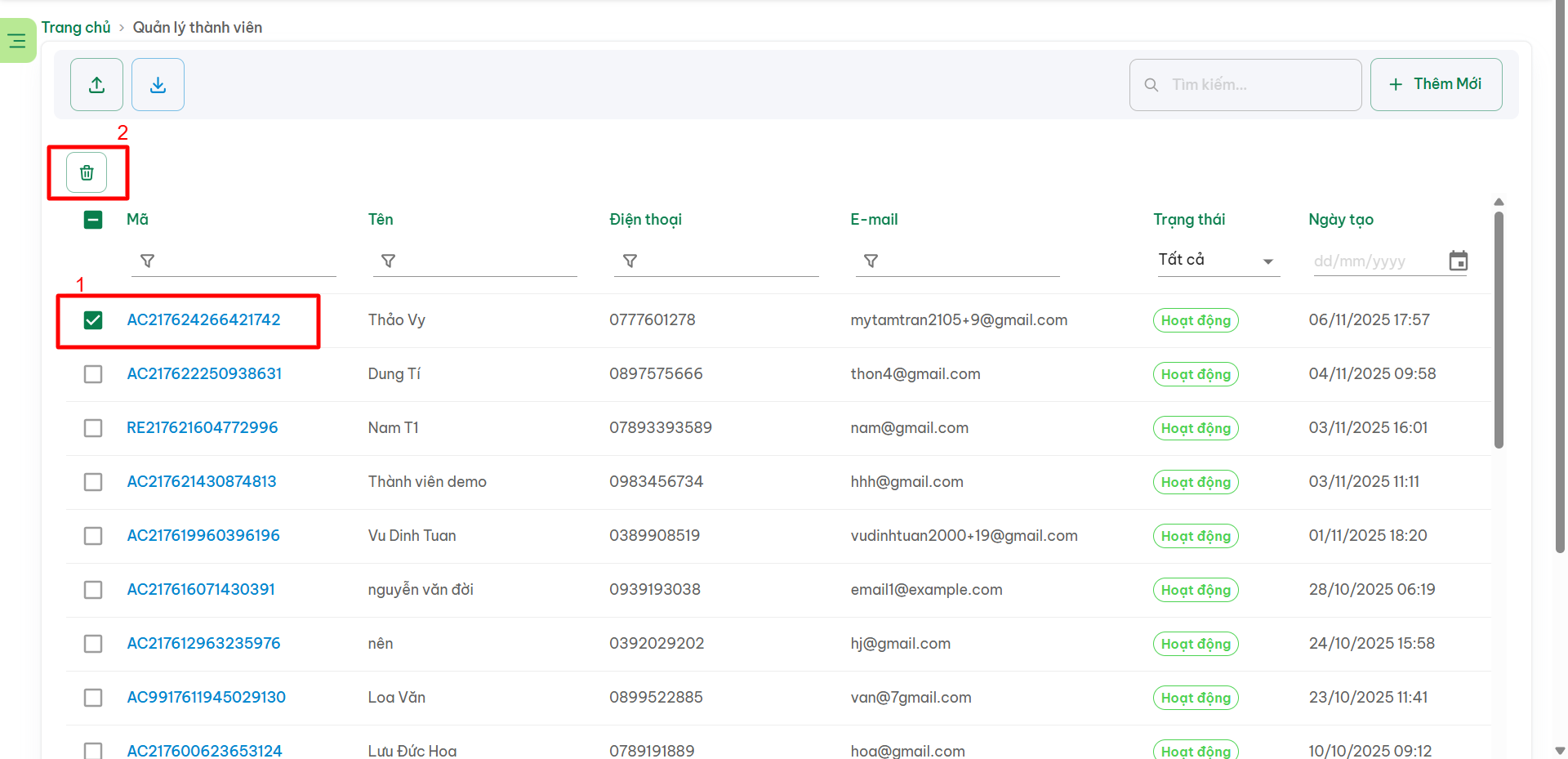 - Ngày tạo: Thời điểm thành viên được tạo trên hệ thống.