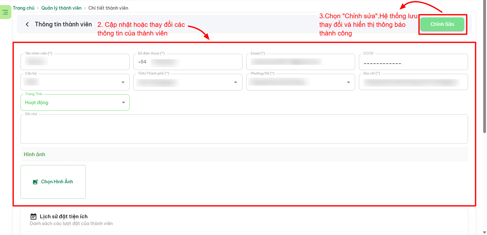 - Hình ảnh: Tải chân dung hoặc ảnh xác thực của thành viên (Nếu có)