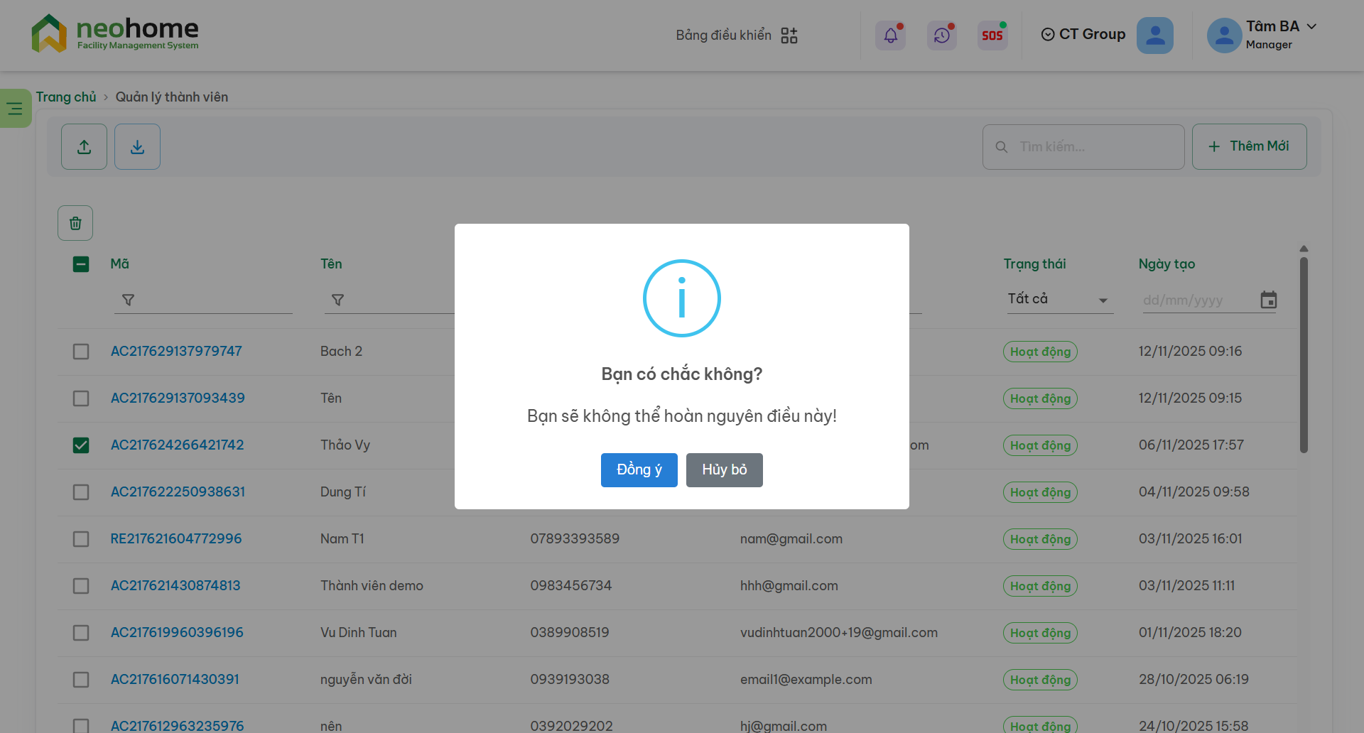 Nhấn “Đồng ý” → Hệ thống tiến hành xóa thành viên.