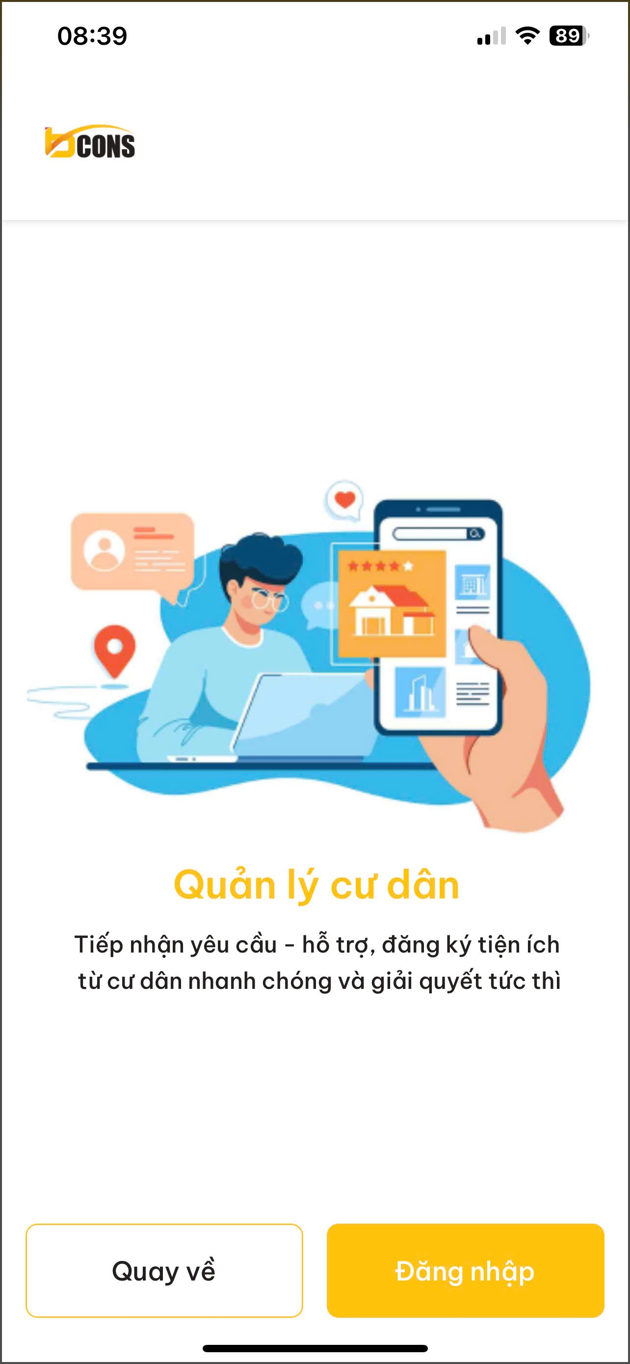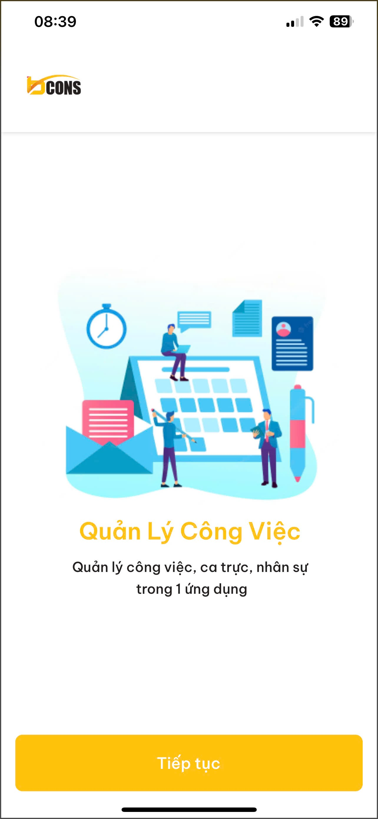 Khi tải ứng dụng (app) thành công. Nhân viên khởi động ứng dụng sẽ hiển thị các màn hình như sau: