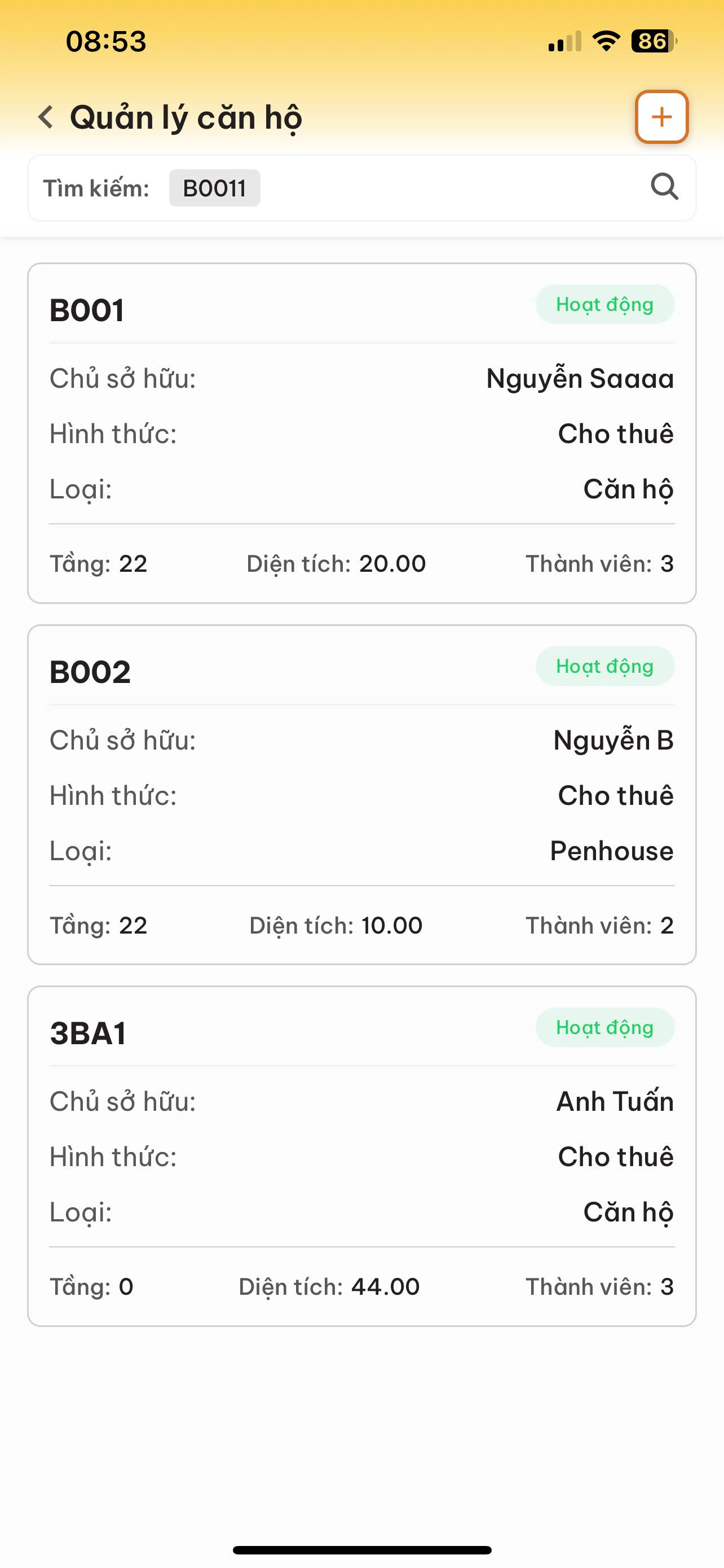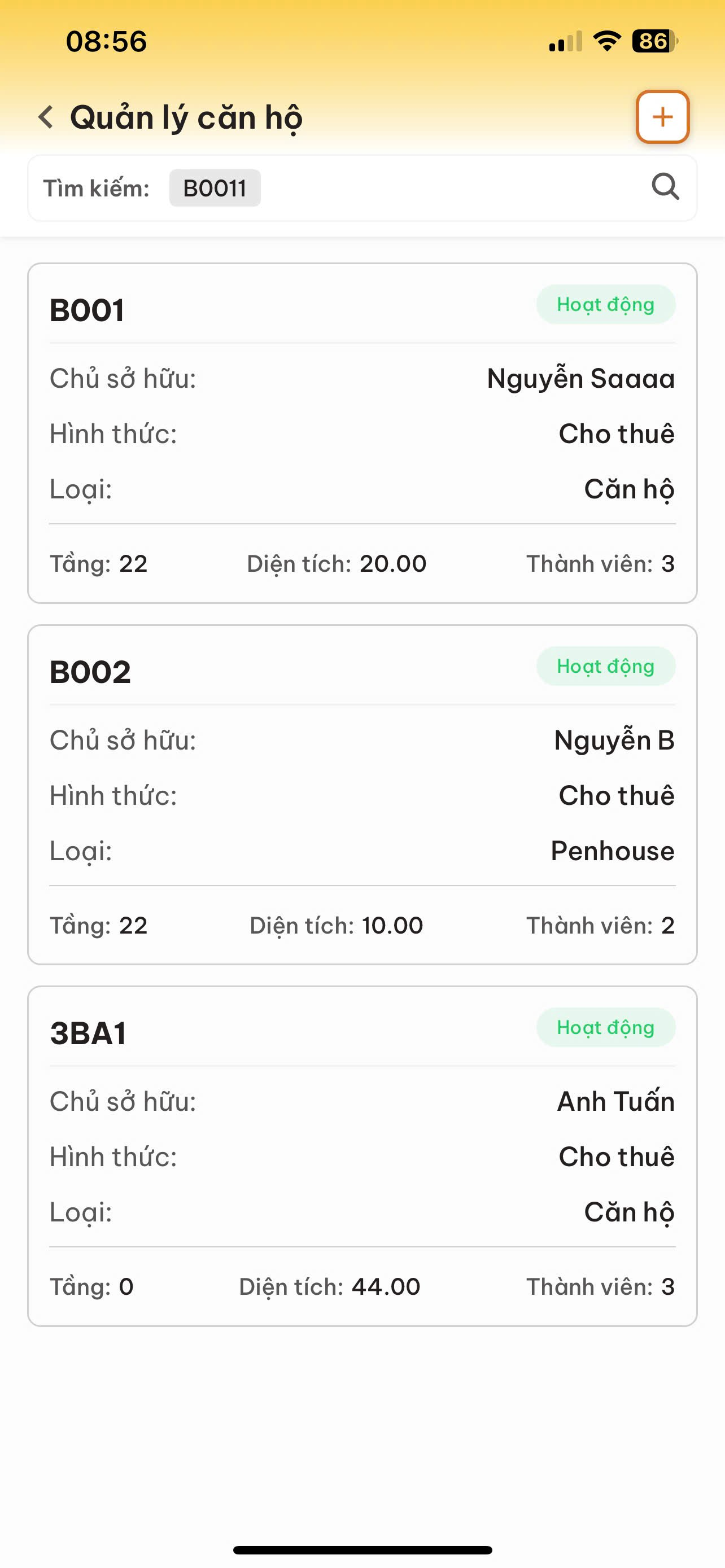 | Tổng căn hộ | Tổng cư dân | Căn hộ trống |