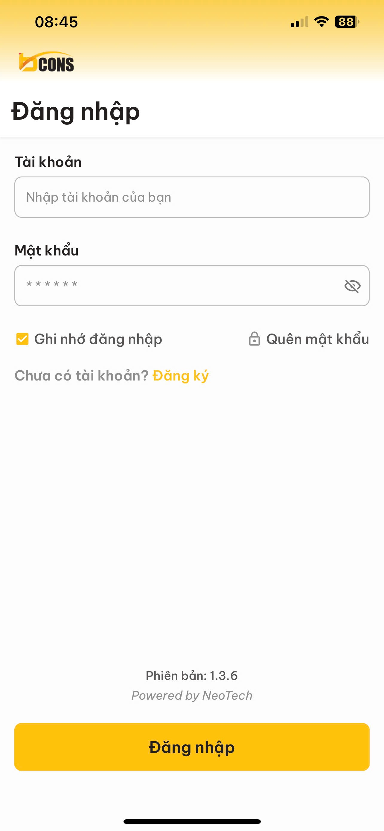 Sau khi nhập đúng thông tin đăng nhập ứng dụng sẽ tự động chuyển vào giao diện chính.