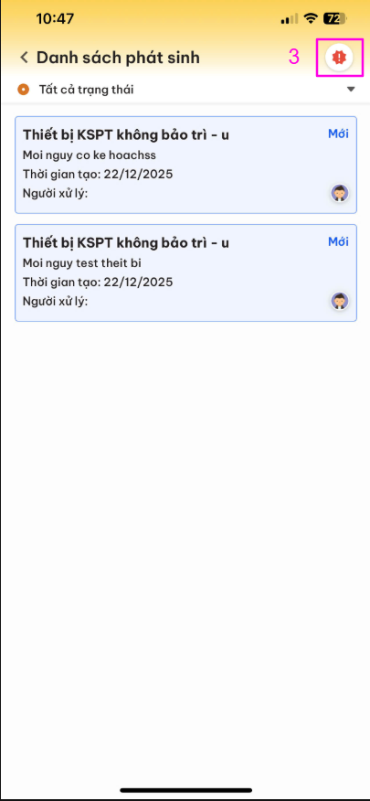 Ở màn hình danh sách phát sinh -> Chọn 1 phát sinh muốn xem thông tin chi tiết -> Nhấn vào phát sinh đó