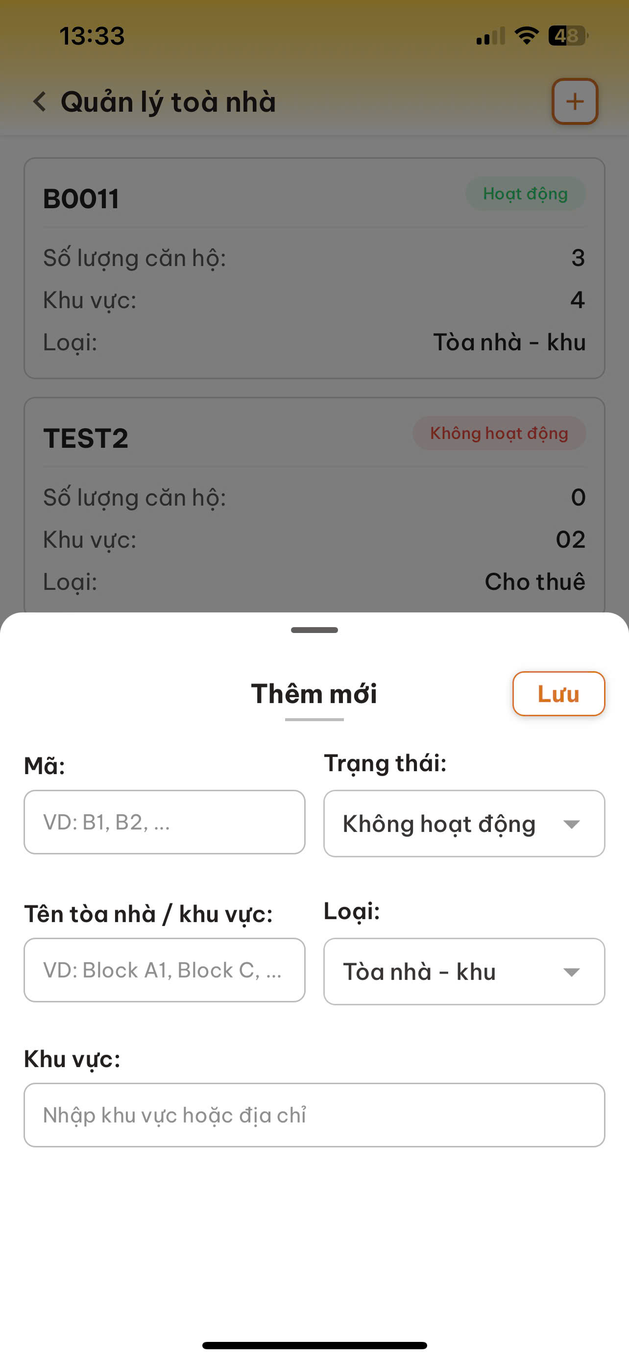 Loại: Chọn mô hình quản lý phù hợp từ danh sách (Ví dụ: Tòa nhà - khu).