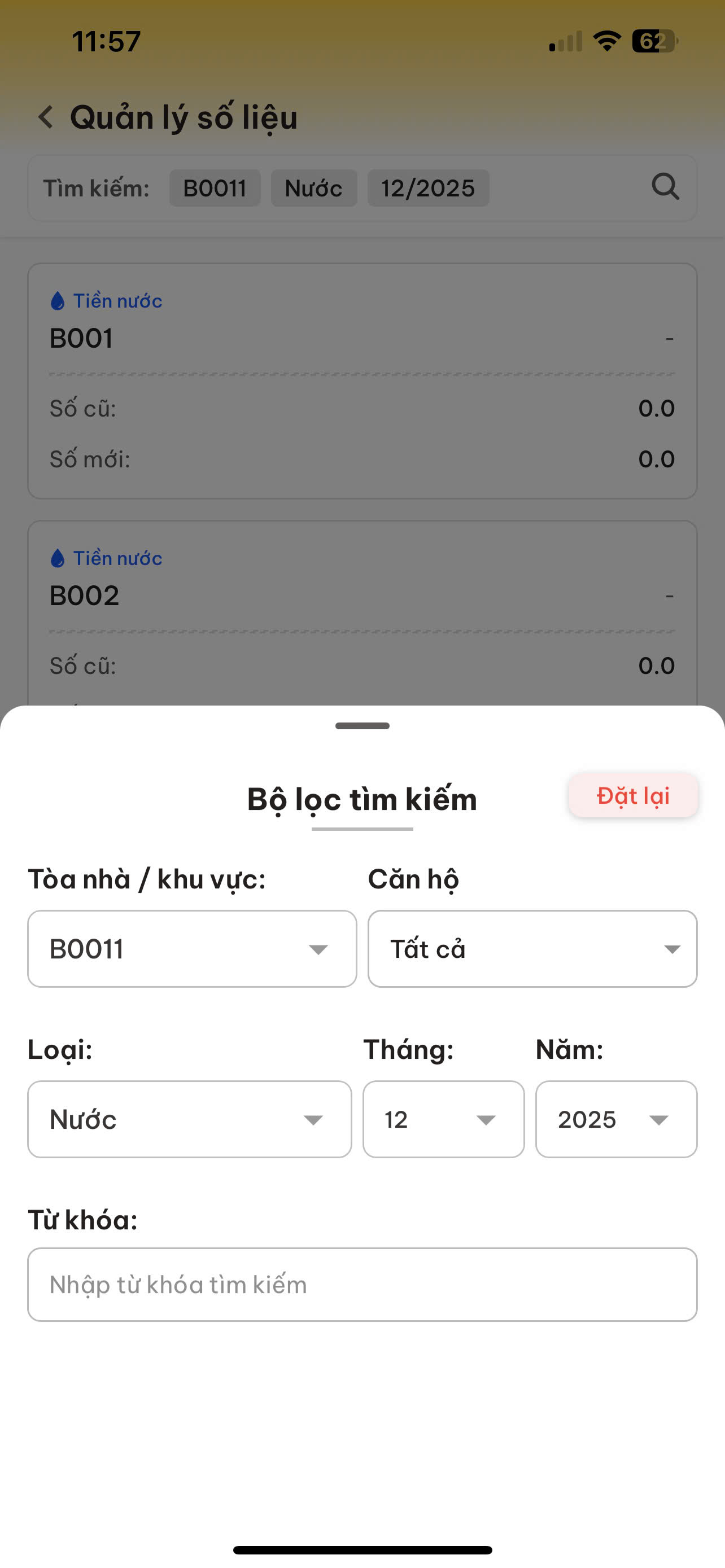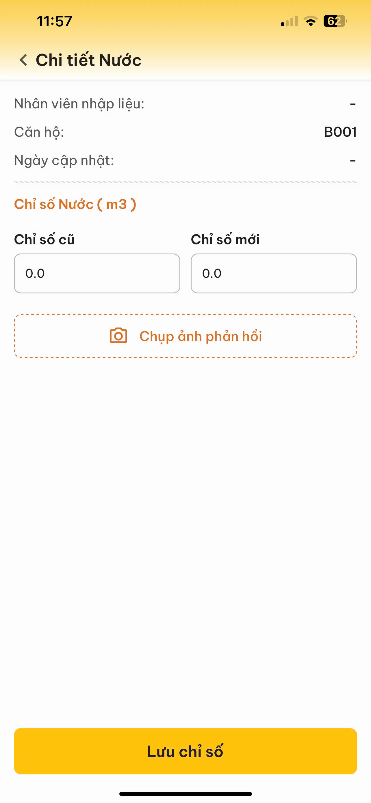 2. Quản lý số liệu : Quản lý và ghi chỉ số (Điện/Nước)