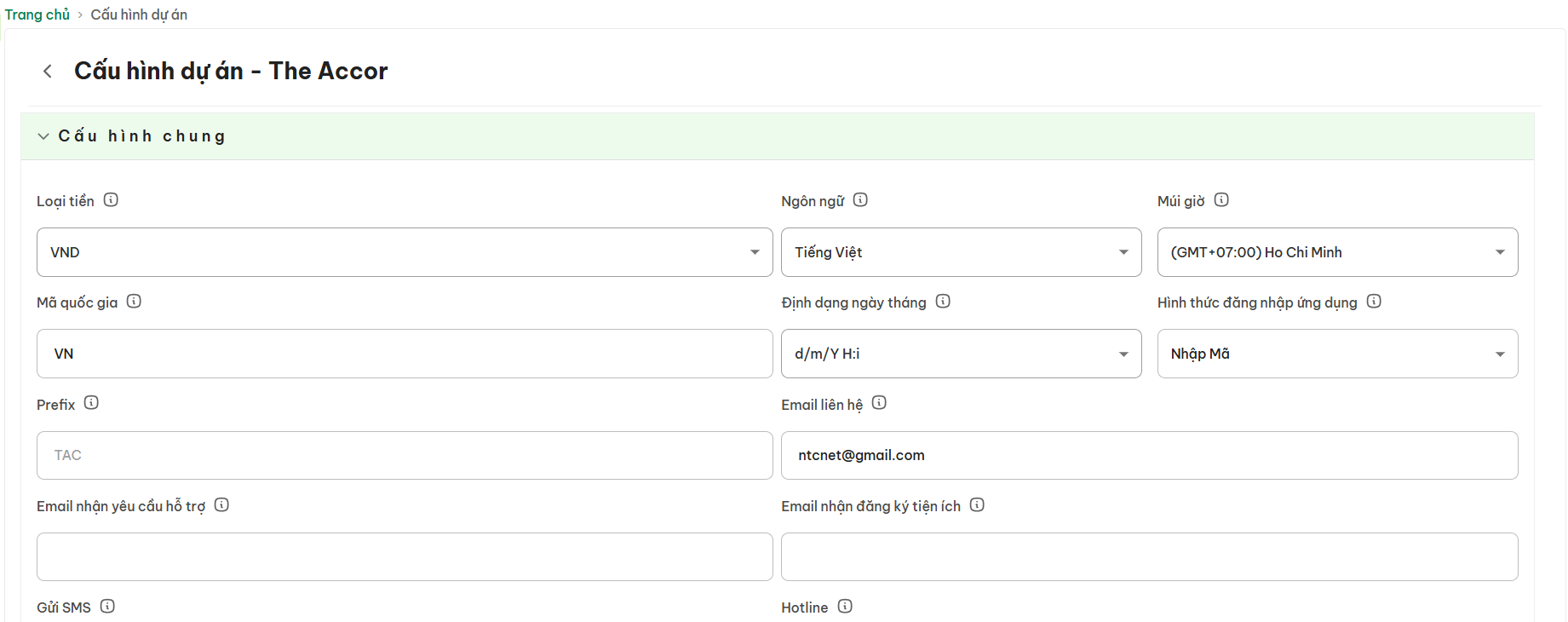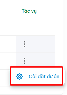 (1) Cấu hình quản trị > nhấn Dự Án (2)