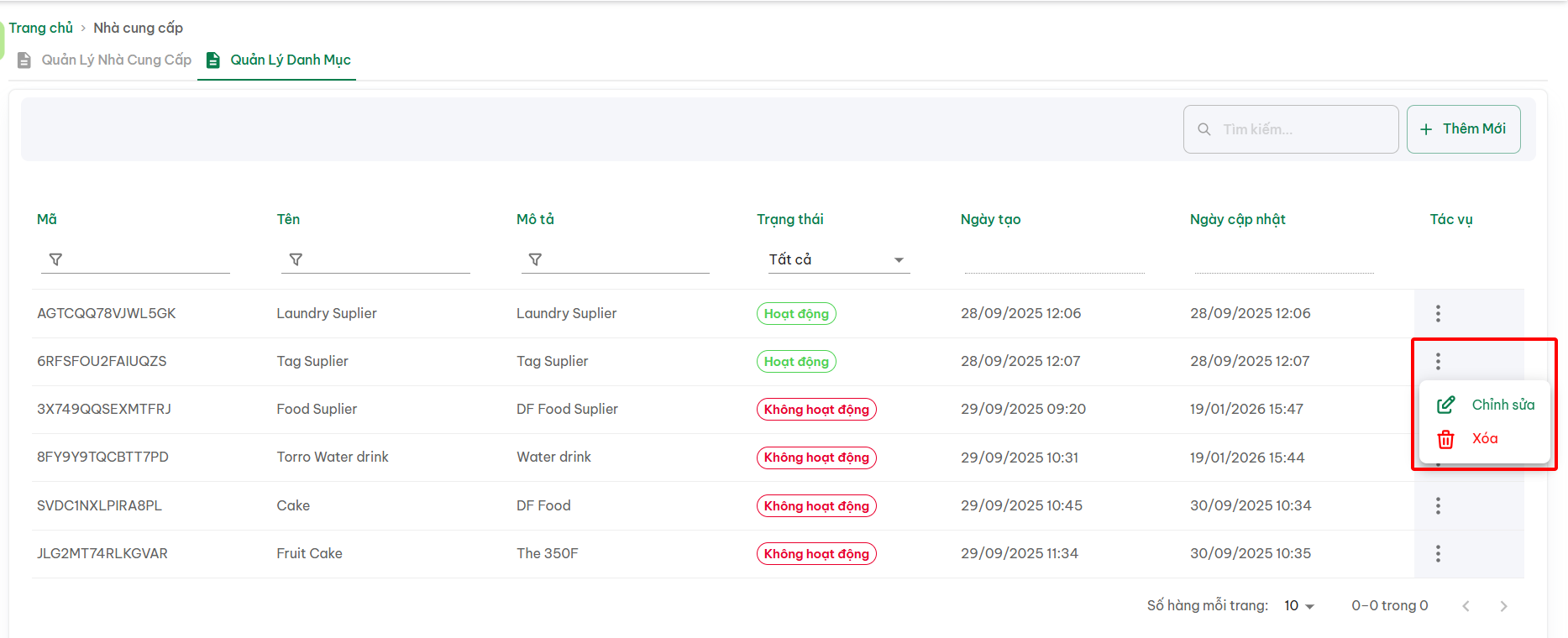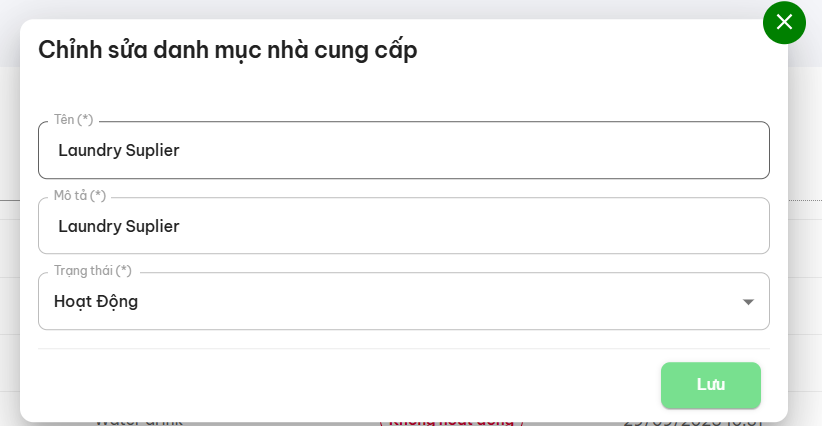 (+) Chọn "Hủy bỏ" thì hệ thống sẽ hoàn tác và trả về danh sách nhà cung cấp