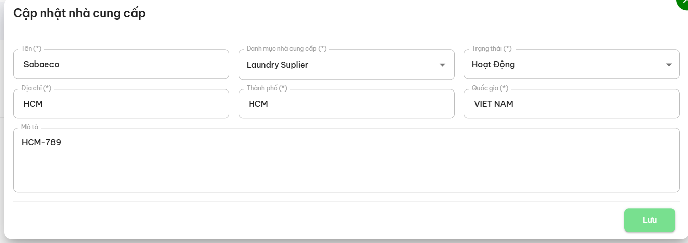 ( 1 ) Chỉnh sửa : Chỉnh sửa lại các nội dung muốn đổi thông tin > nhấn Lưu để cập nhật thông tin mới