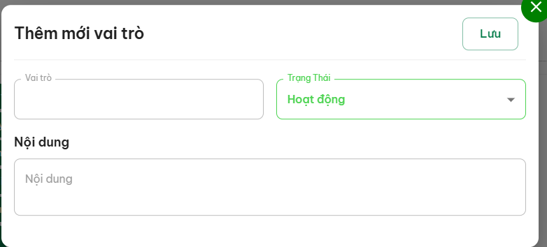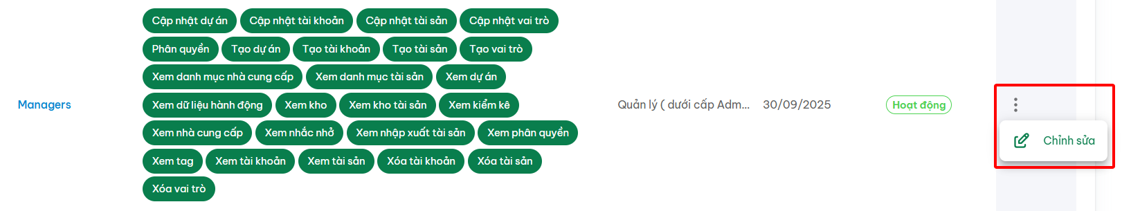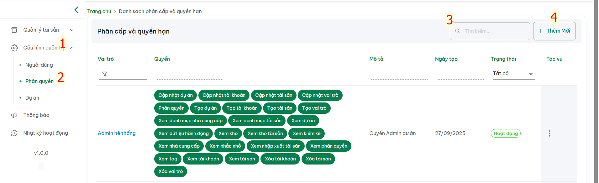 Vai trò | Quyền | Mô tả | Ngày tạo | Trạng thái | Tác vụ