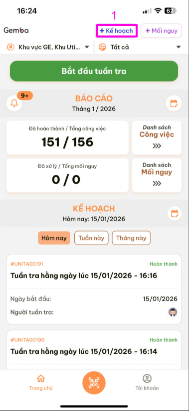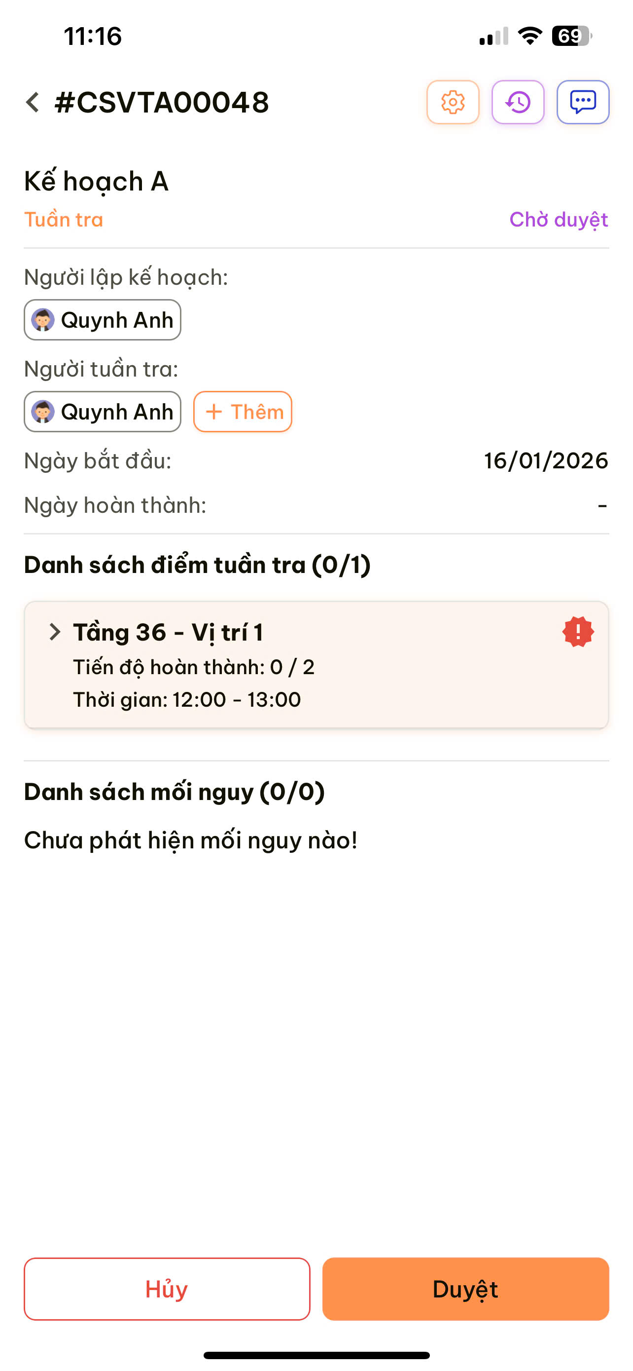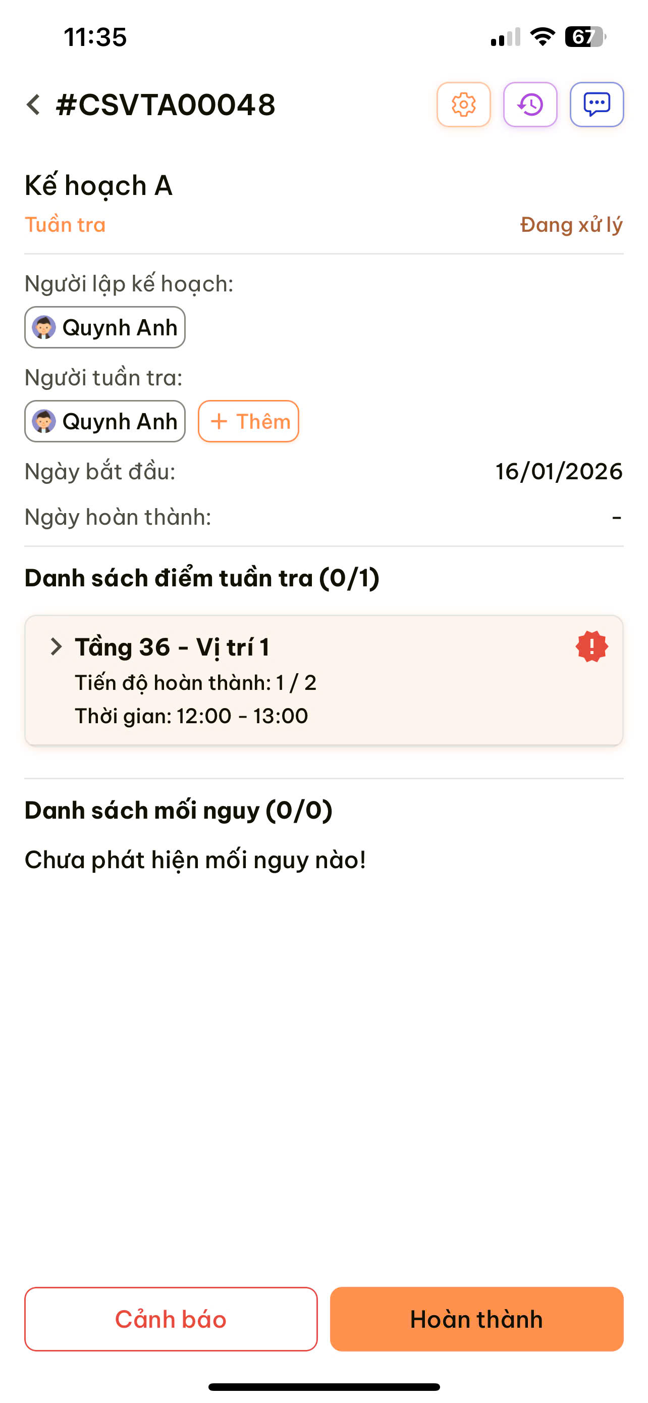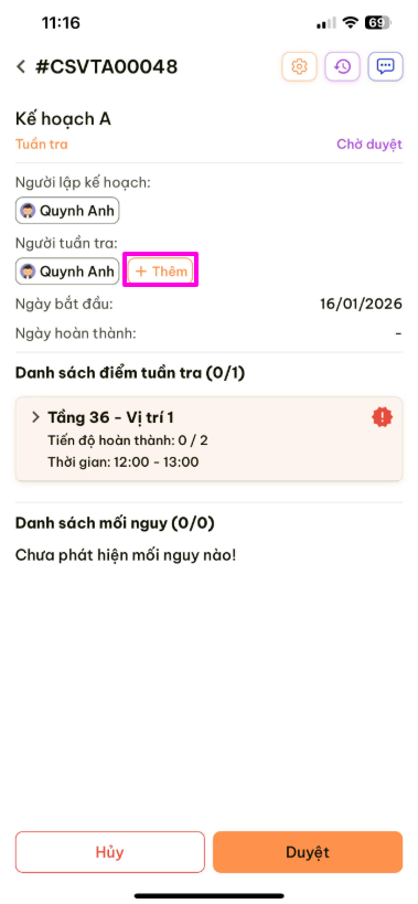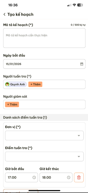 Người tuần tra: Người tuần tra cho kế hoạch. Mặc định ban đầu sẽ có người tạo kế hoạch là người tuần tra .