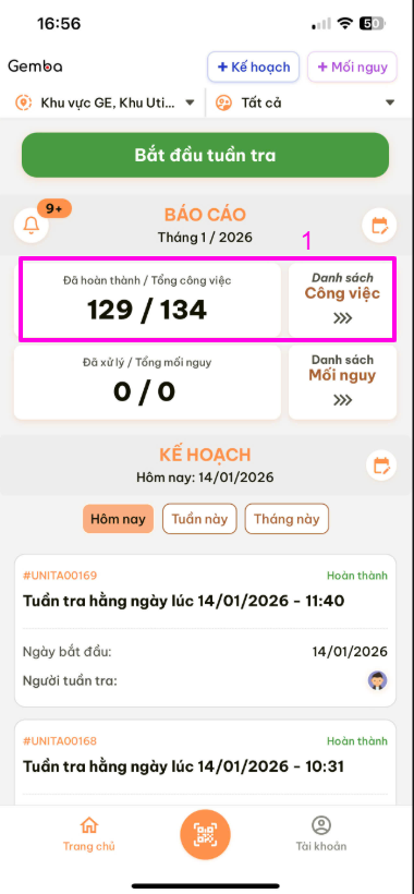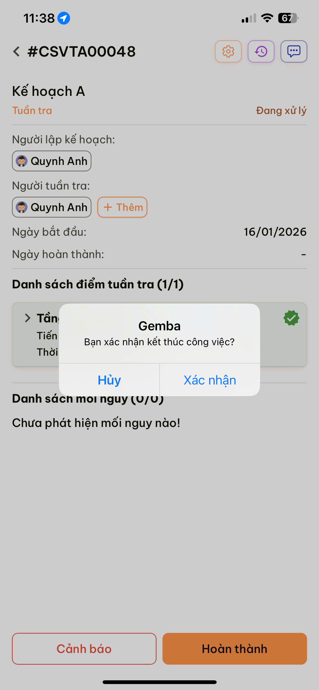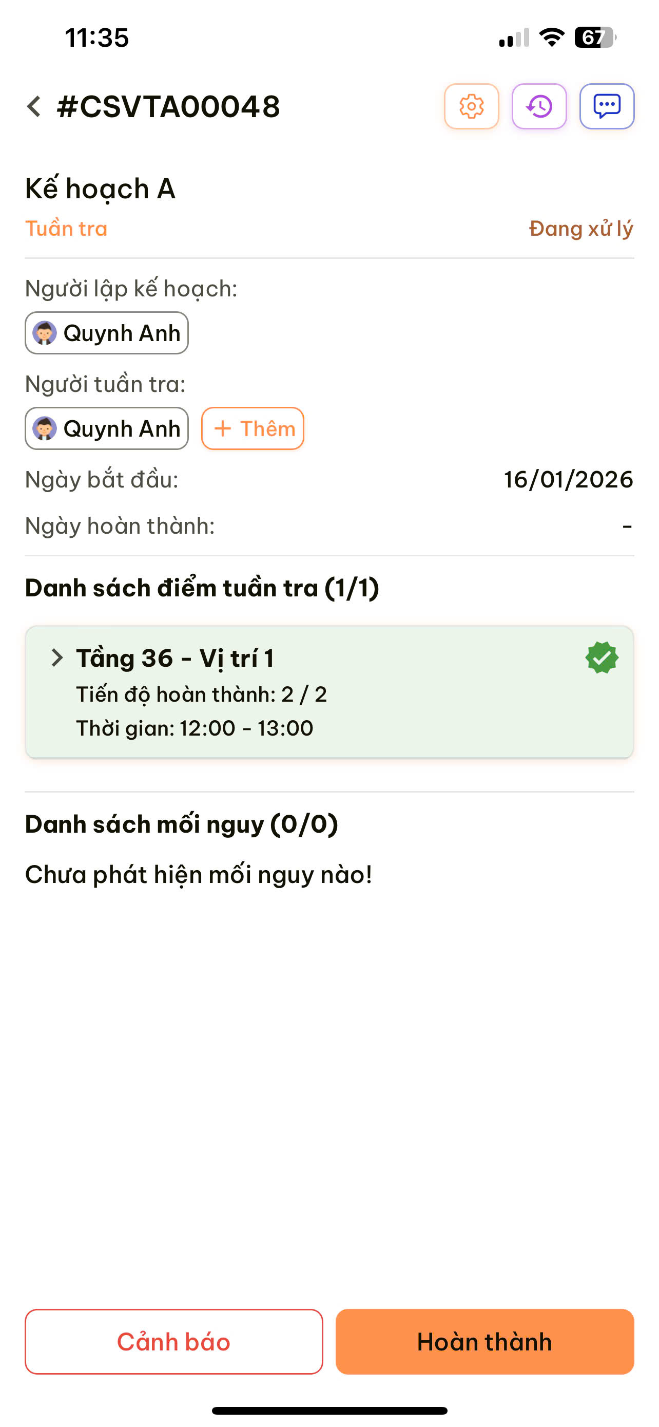 B4: Khi thực hiện hết tất cả cả các điểm tuần tra > Bấm nút " Hoàn thành"
