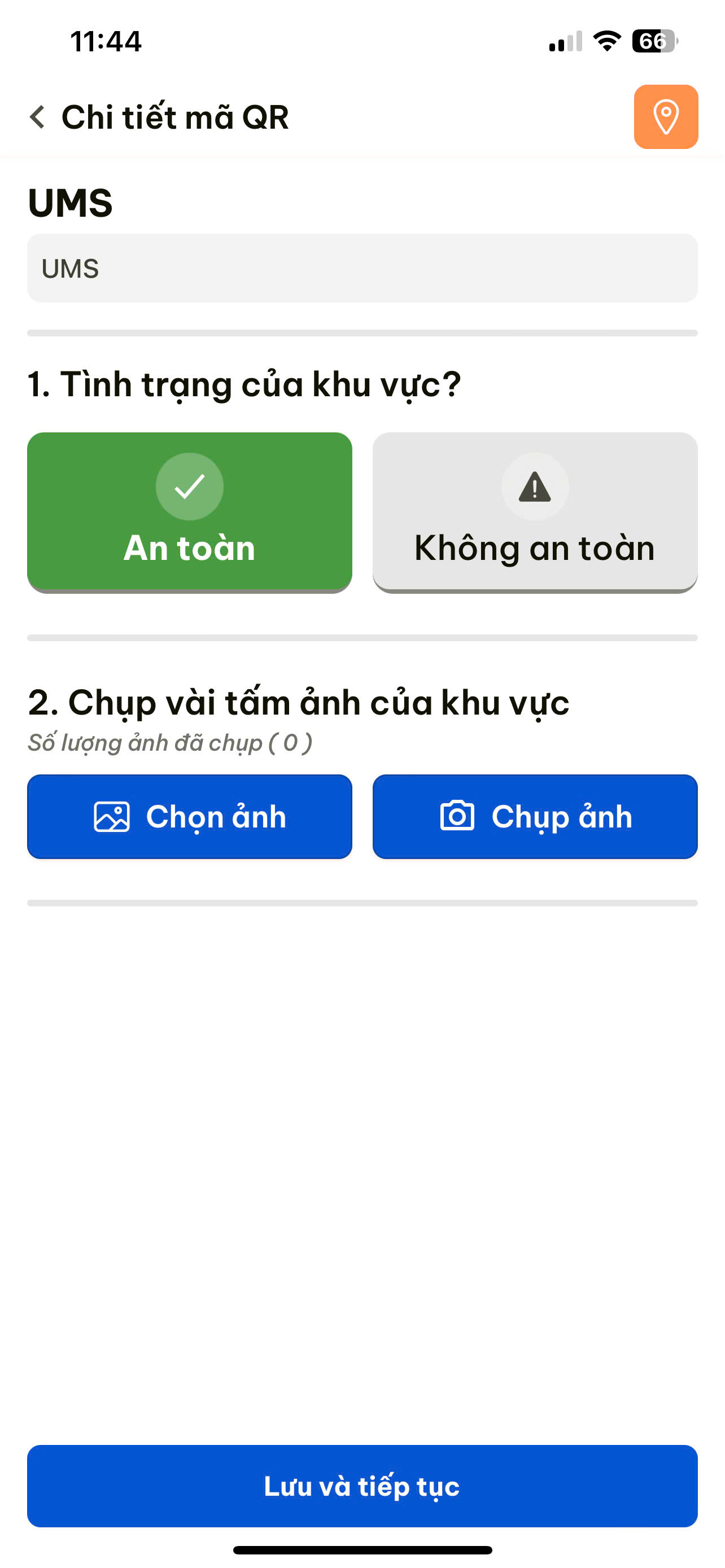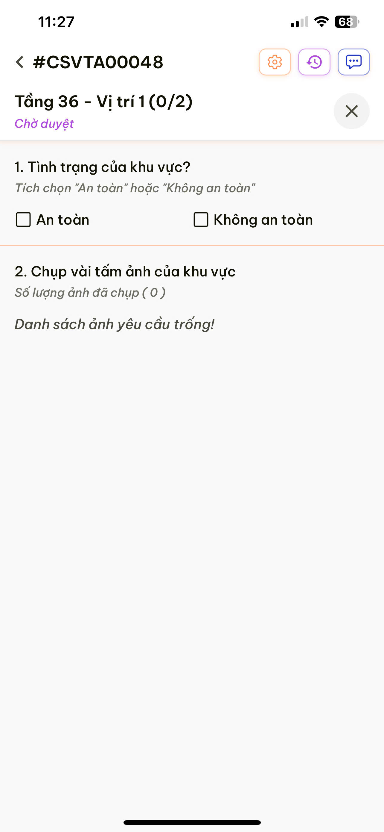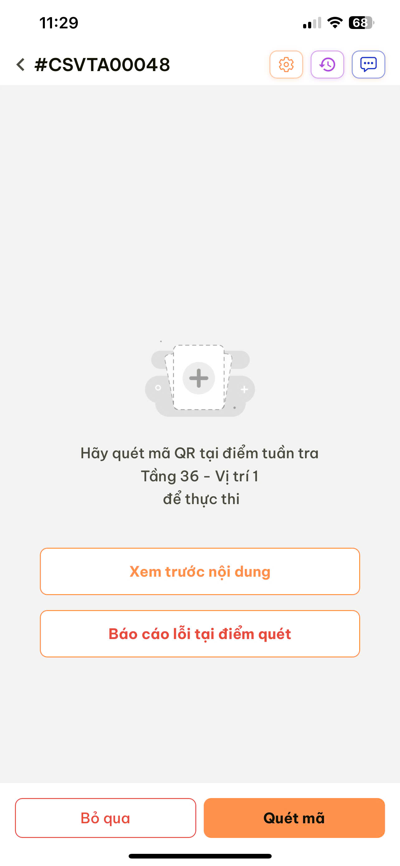B2 : Chọn nút" Xem nội dung" hoặc chọn nút " quét mã" để quét QRCode của điểm tuần tra > Giao diện hiện thị các Checklist để thực hiện (như hình dưới đây) > Thực hiện > Lưu trữ liệu
