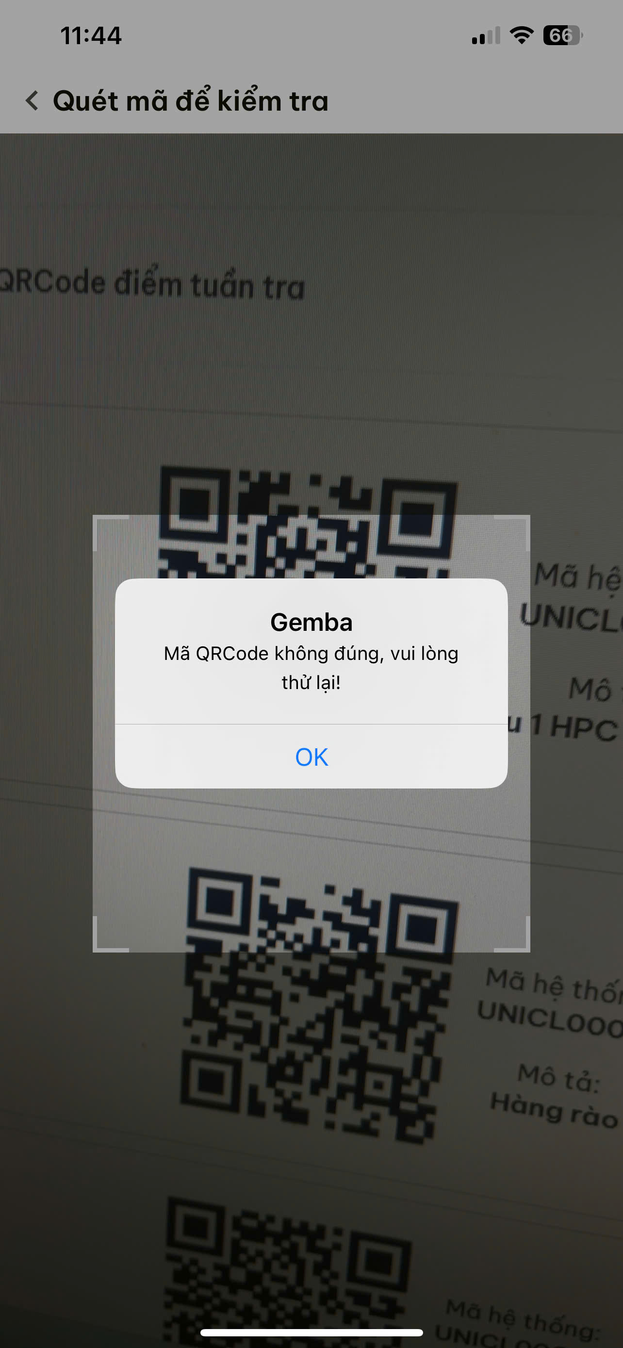 TH2: quét mã QR đúng > giao diện hiện thị thông tin của điểm tuần tra vừa quét QRCode |