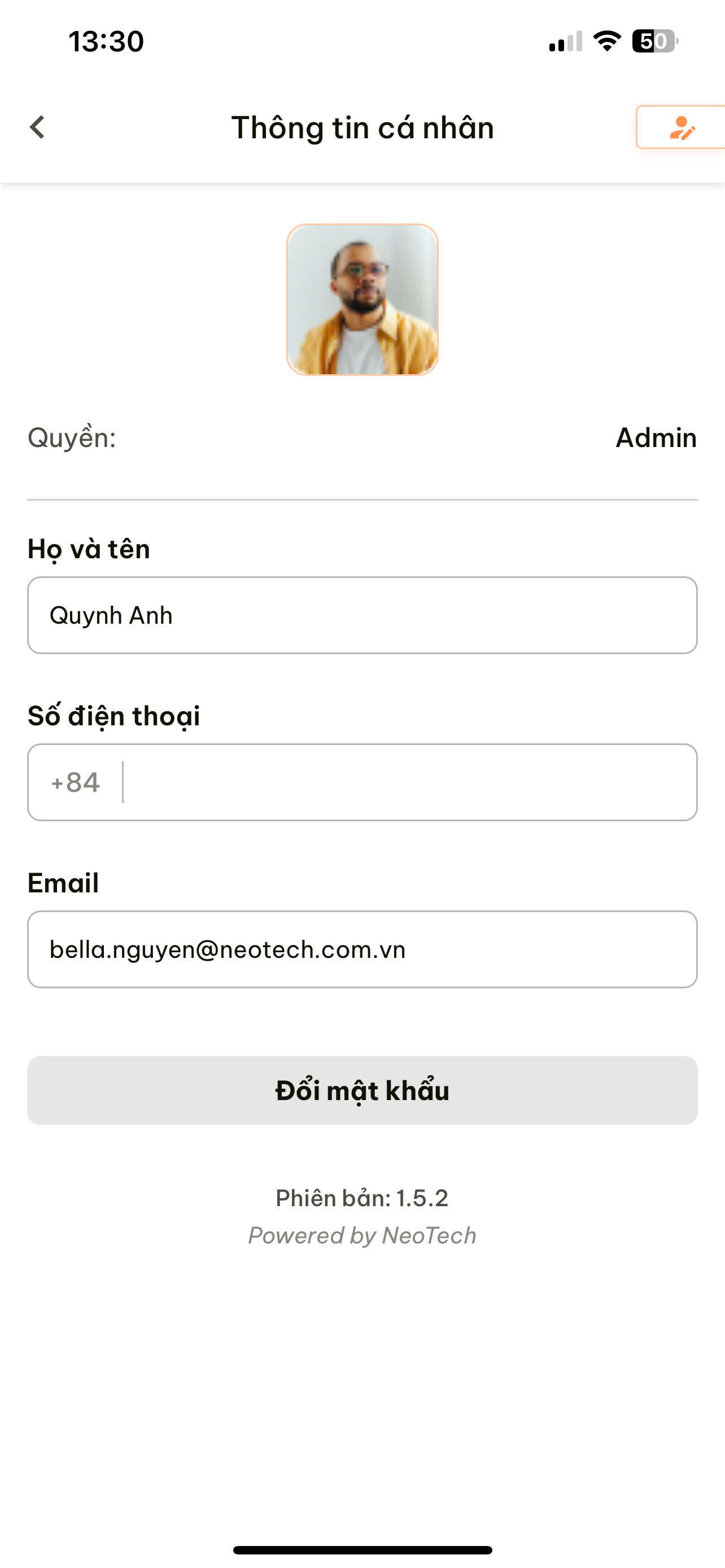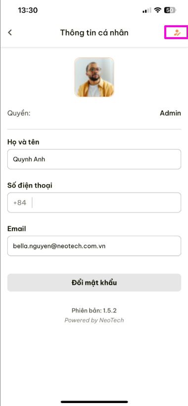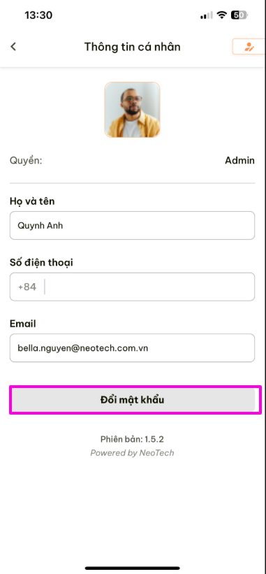 | Bước 1 : Vào thông tin cá nhân > Chọn "Đổi mật khẩu" |