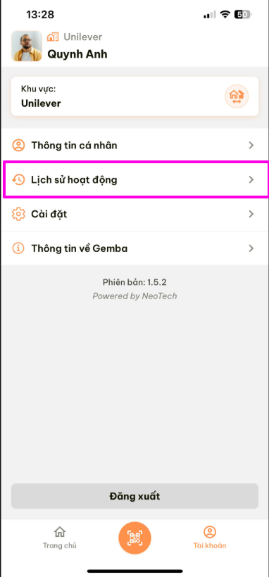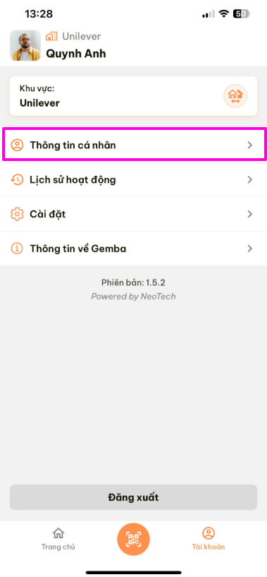 | Bước 1 : Đăng nhập vô app > Chọn tài khoản | Bước 2 : Chọn thông tin cá nhân | Bước 3 : Giao diện hiện thị thông tin cá nhân |