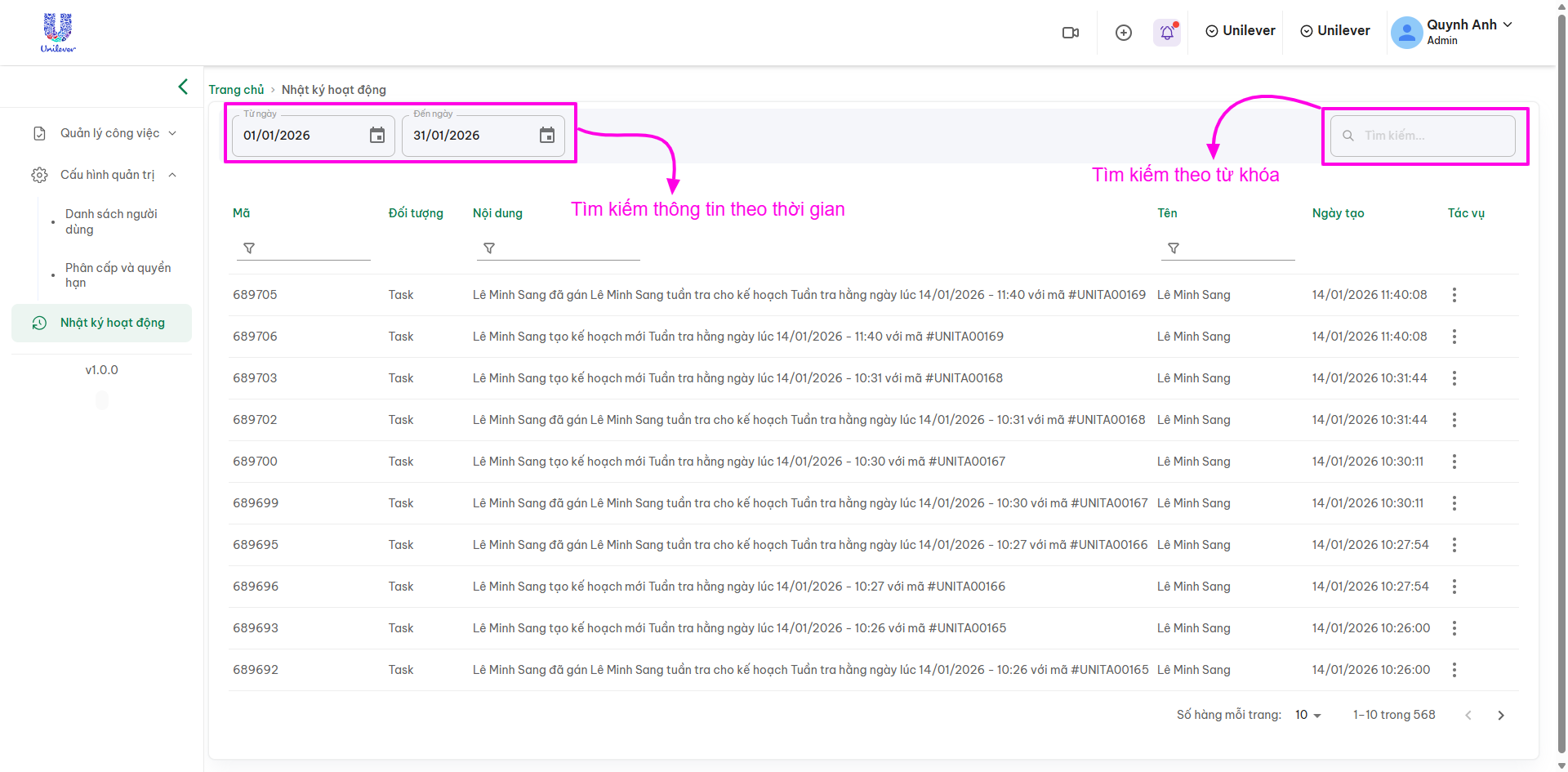 NHẬT KÝ HOẠT ĐỘNG