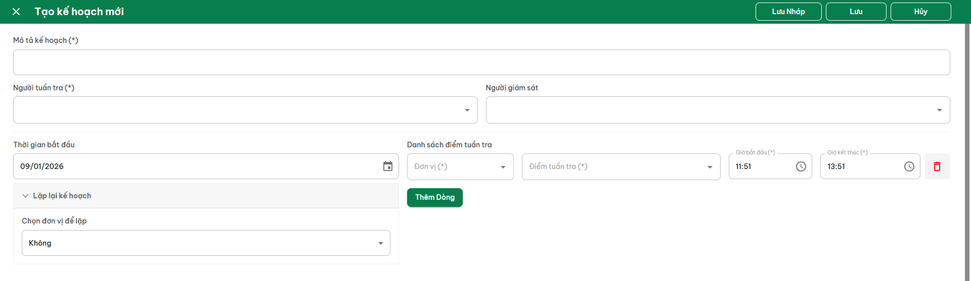 Bước 2. Hiện thị giao diện Thêm mới kế hoạch, tại đây